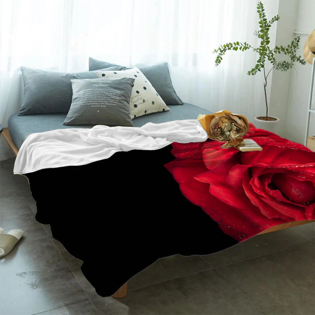 Фланелевое Одеяло для кровати и дивана, смешное мягкое флисовое покрывало с цветами в виде лепестков роз, красного цвета, для Валентина