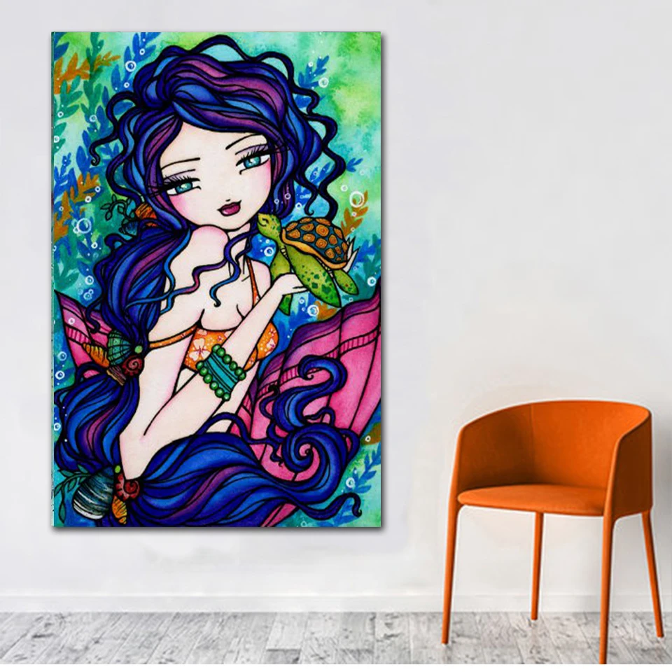 Алмазная 5D картина сделай сам, Сказочная Фея русалки, черепаха, полный квадрат, круглая вышивка крестиком, мозаика для украшения комнаты девушки