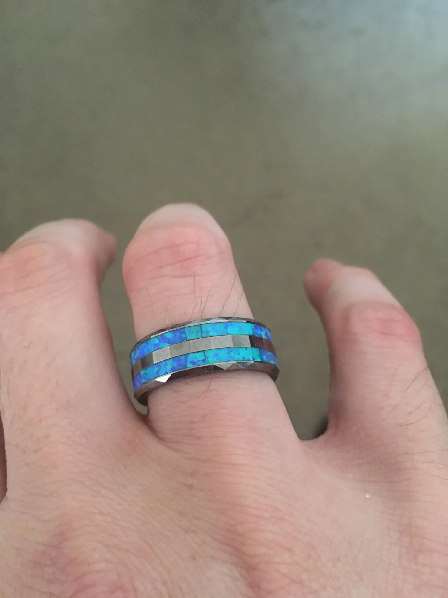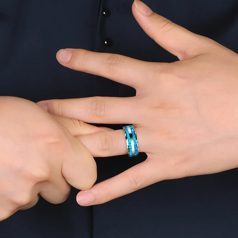 Кольцо женскоеМужское, из искусственного синего опала, шириной 8 мм...