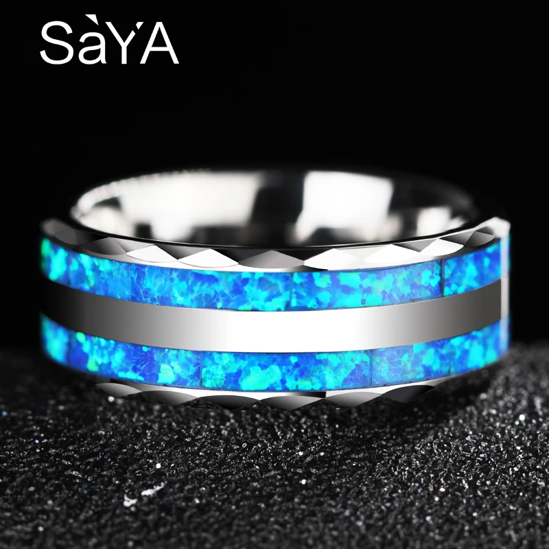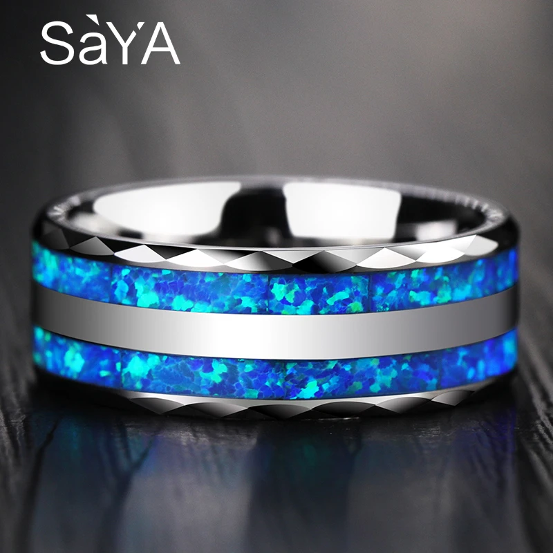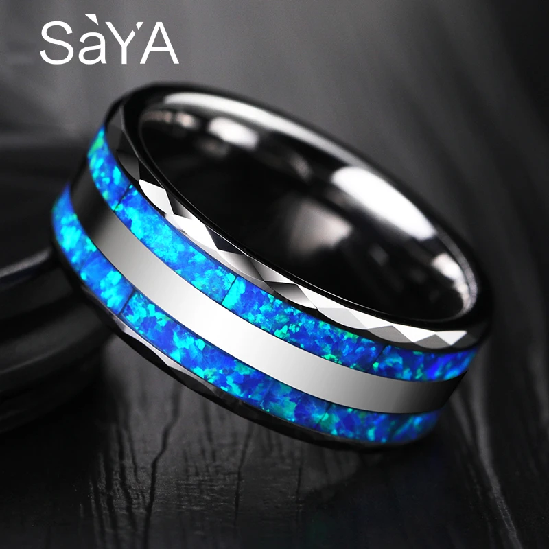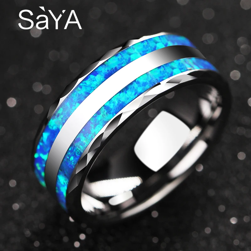 Новое роскошное ювелирное изделие шириной 8 мм, вольфрамовое кольцо на костяках для свадьбы, инкрустация из двух предметов, синтетический синий опал для женщин и мужчин, комфортный крой 7-11