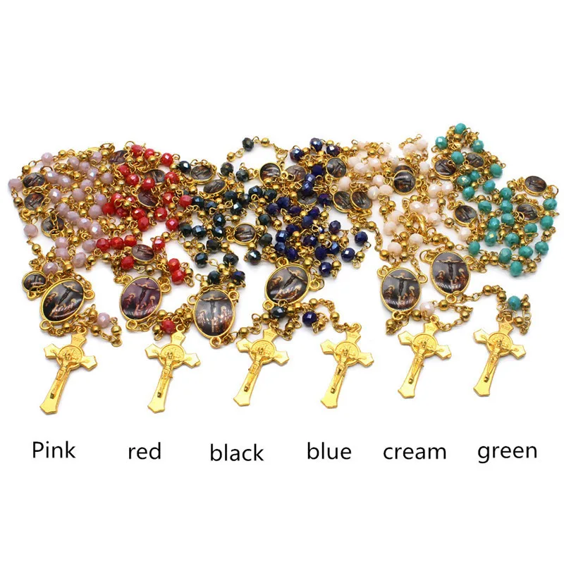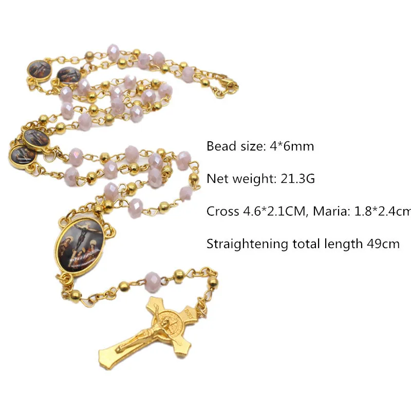 Женское винтажное ожерелье в стиле Дева Мария, с подвеской в виде креста и Розария