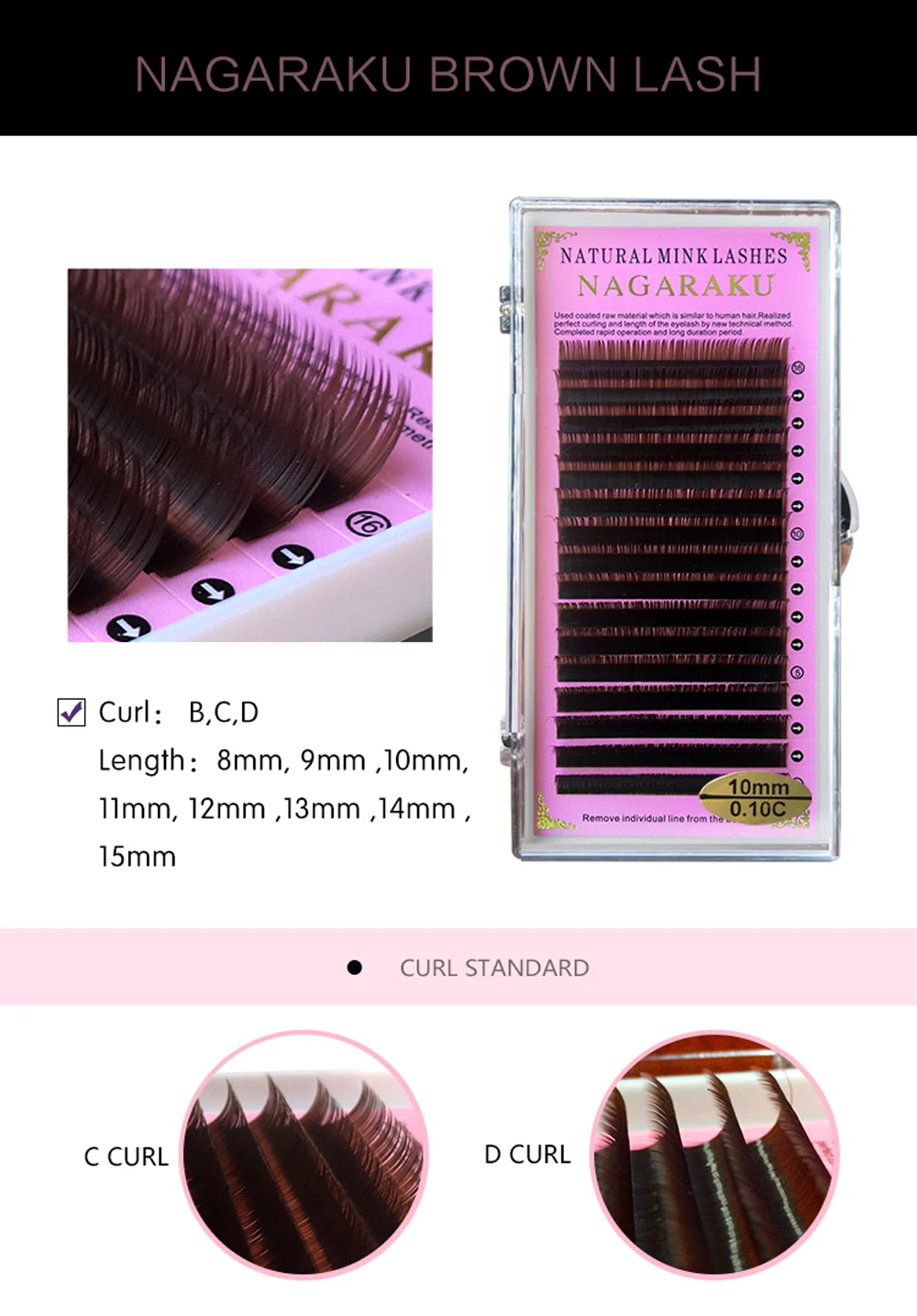 16 рядов коричневых норковых ресниц для наращивания NAGARAKU, супер...