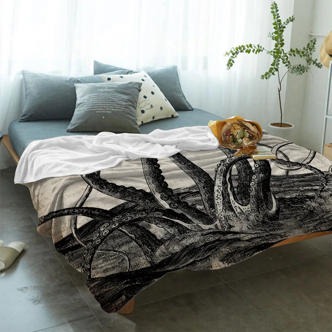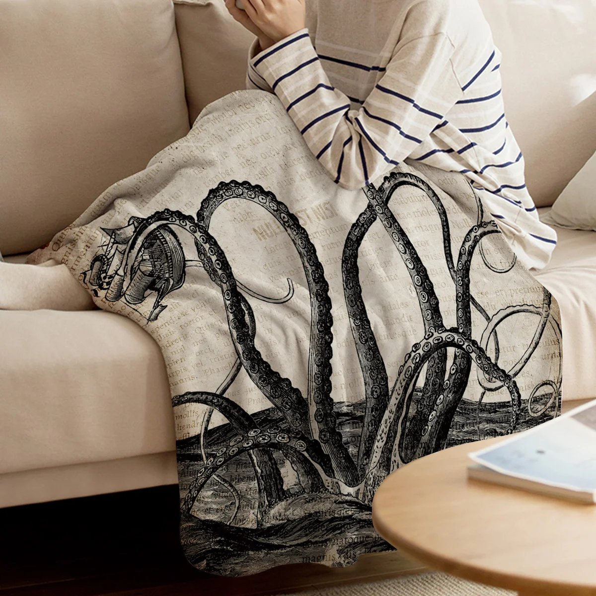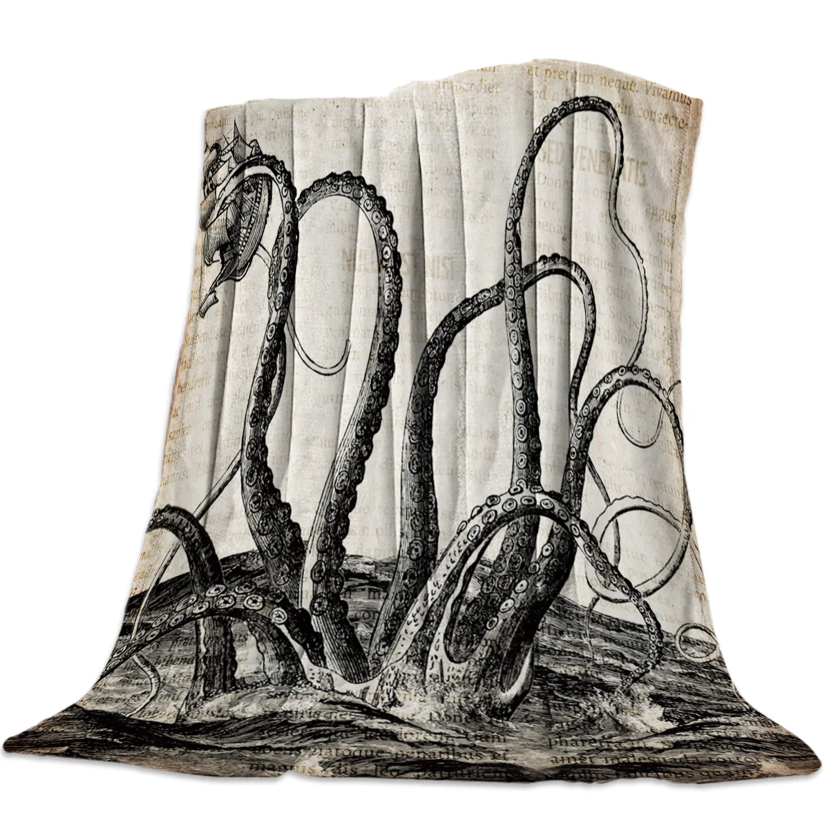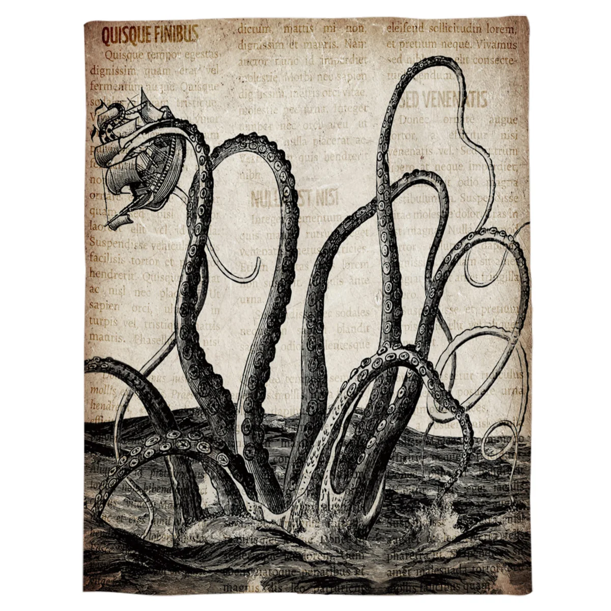 Фланелевое покрывало Cthulhu с изображением осьминога, старой газеты, для кровати, дивана, портативное мягкое флисовое покрывало, забавное плюшевое покрывало