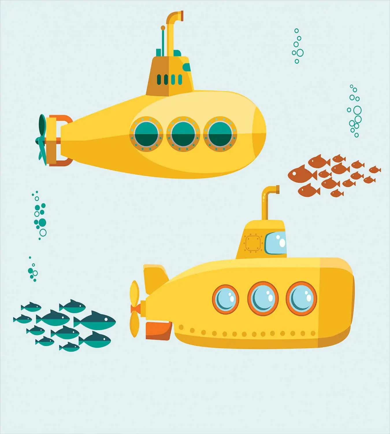 Комплект постельного белья из 3 предметов: подводная лодка, перископ, рыба, желтый, бирюзовый, жареный оранжевый