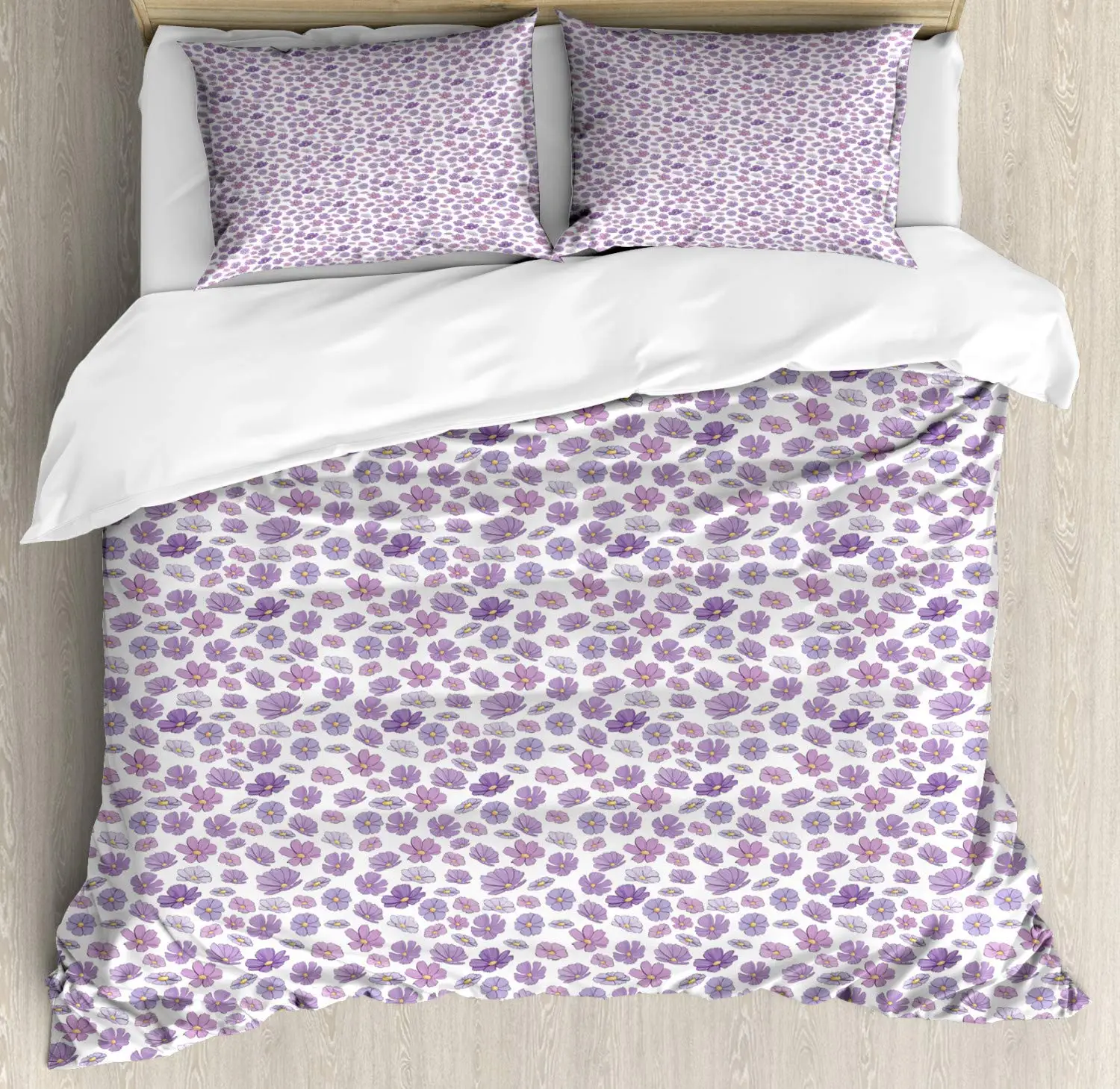 Комплект постельного белья из 3 предметов, с цветочным рисунком, лаванда, лаванда, голубой, пастельно-коричневый и белый