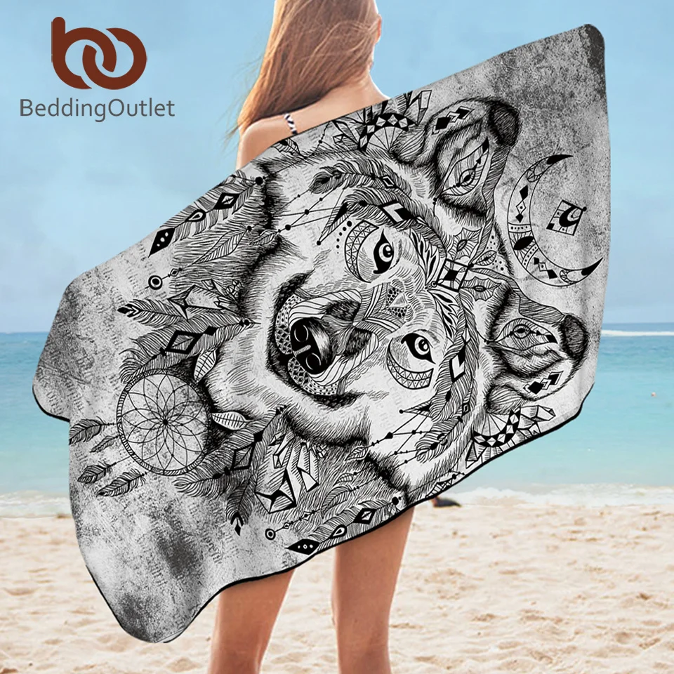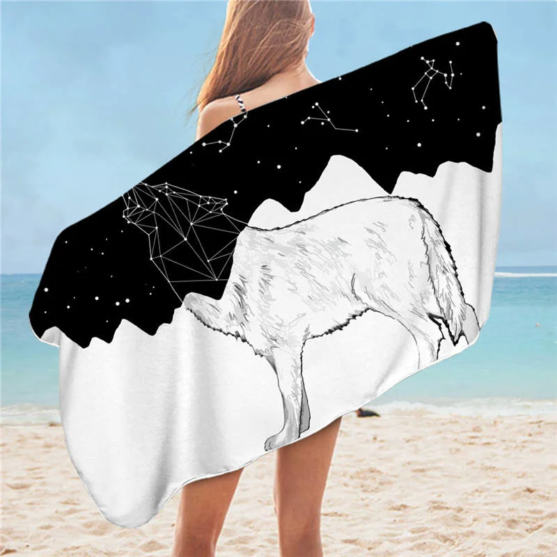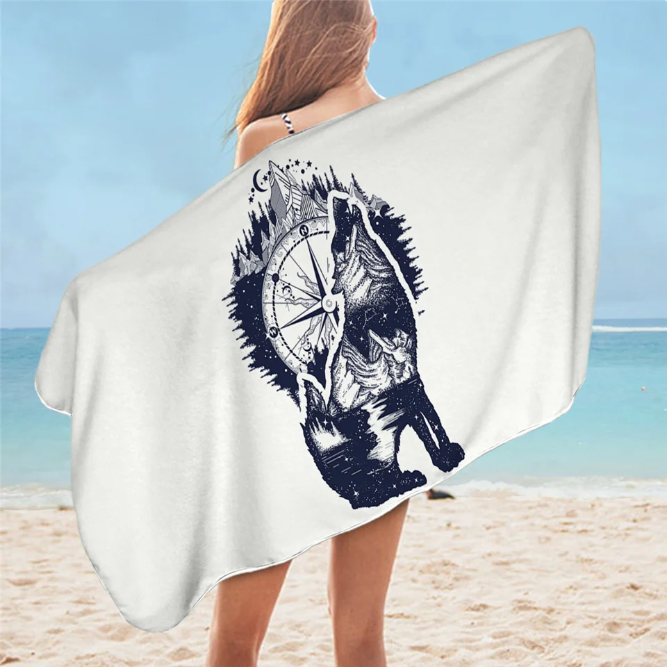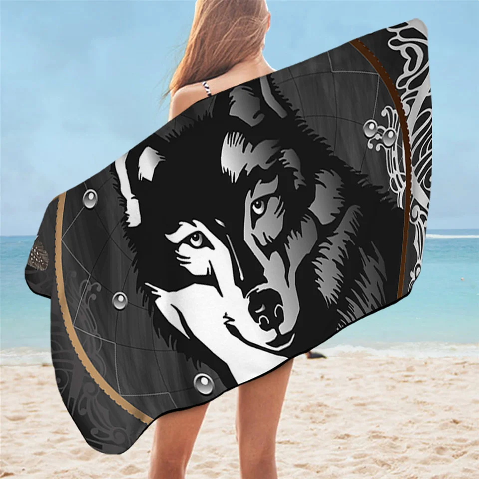 Полотенце банное из микрофибры, 75 х150 см, с изображением волка