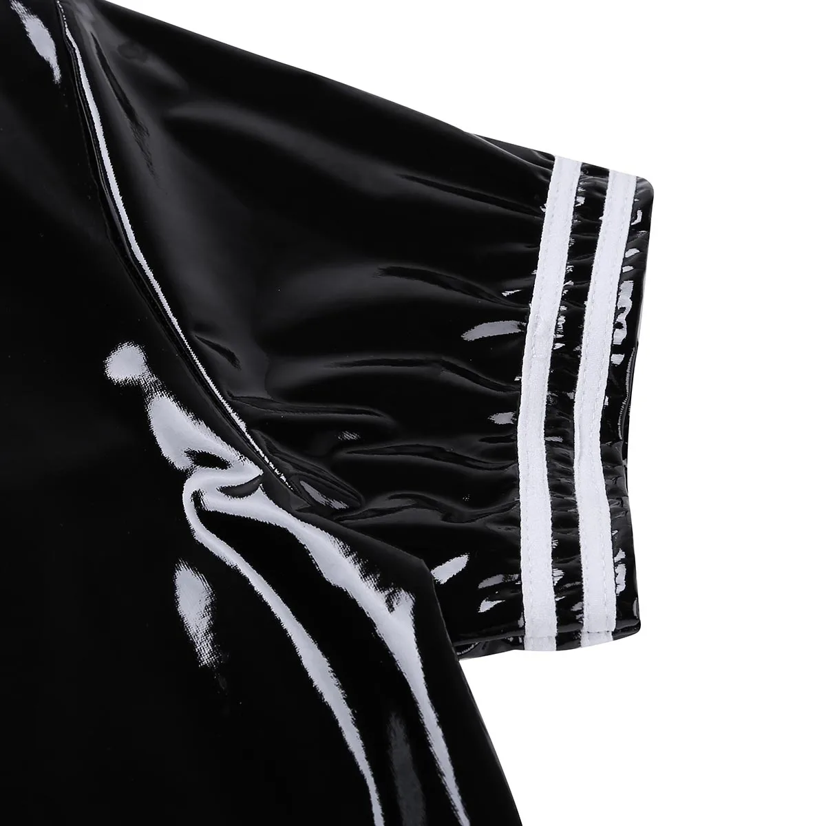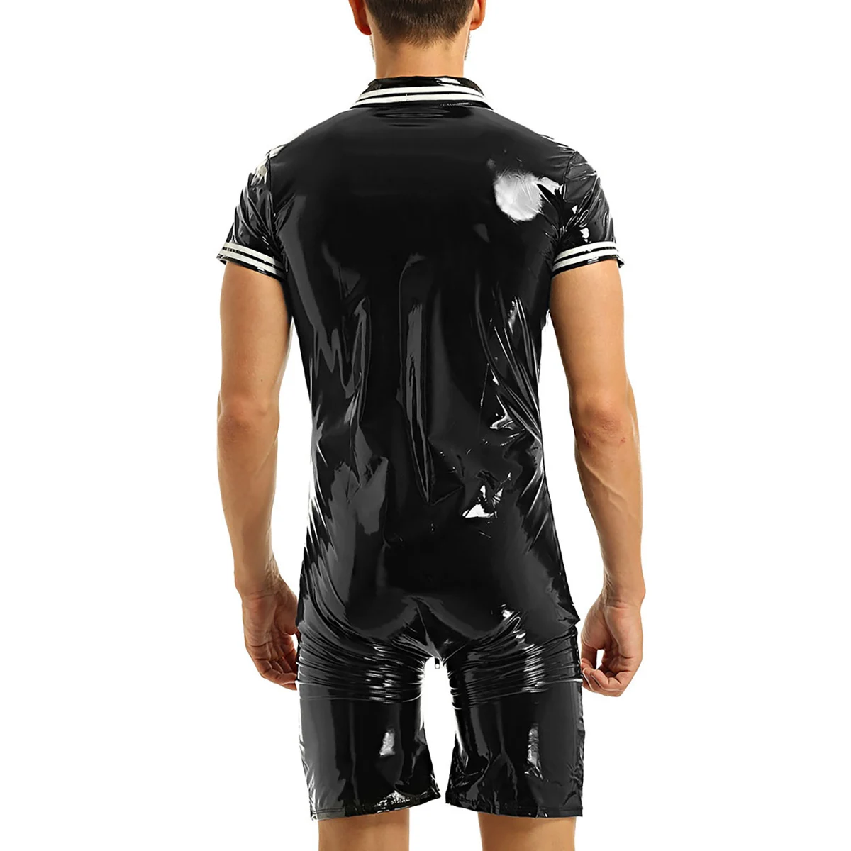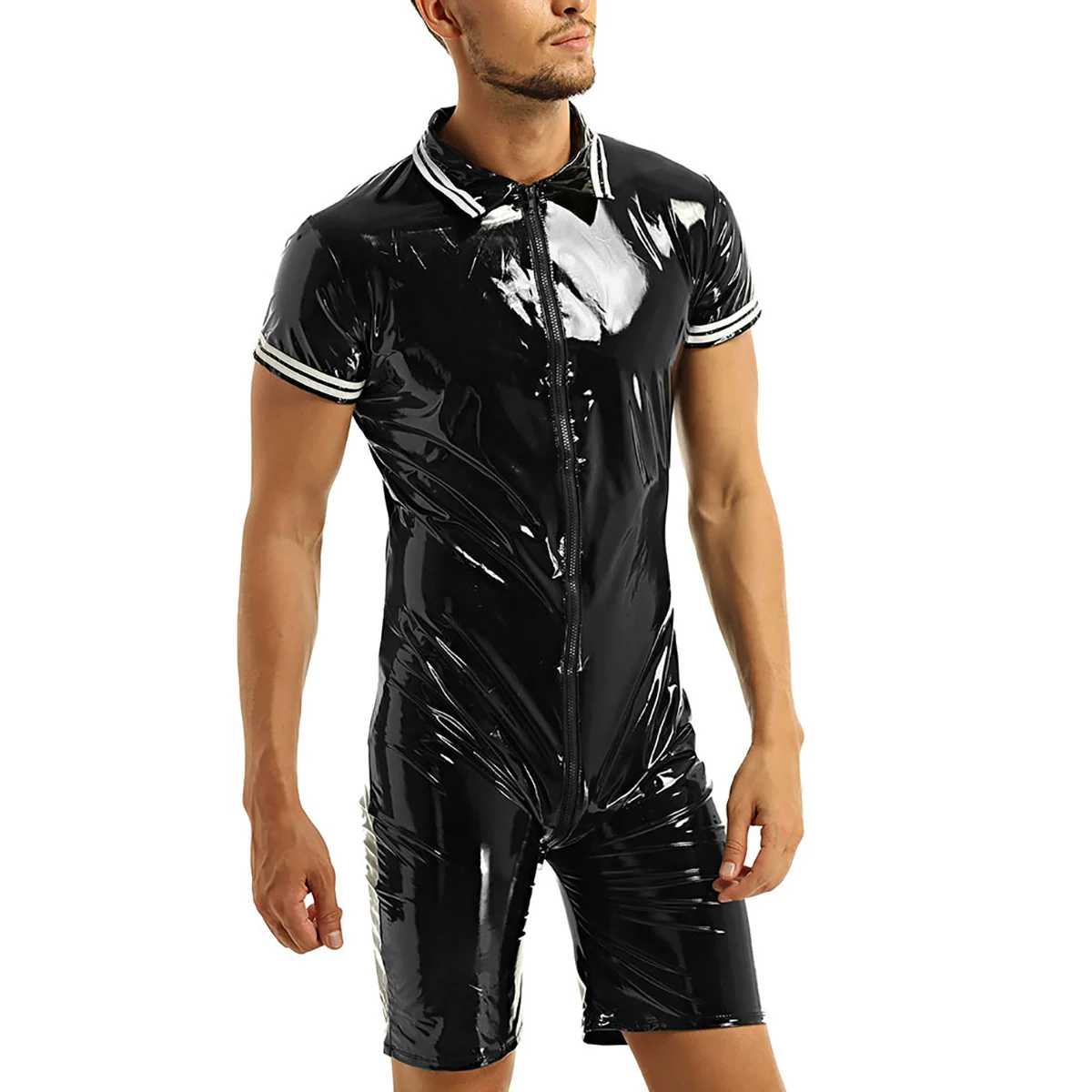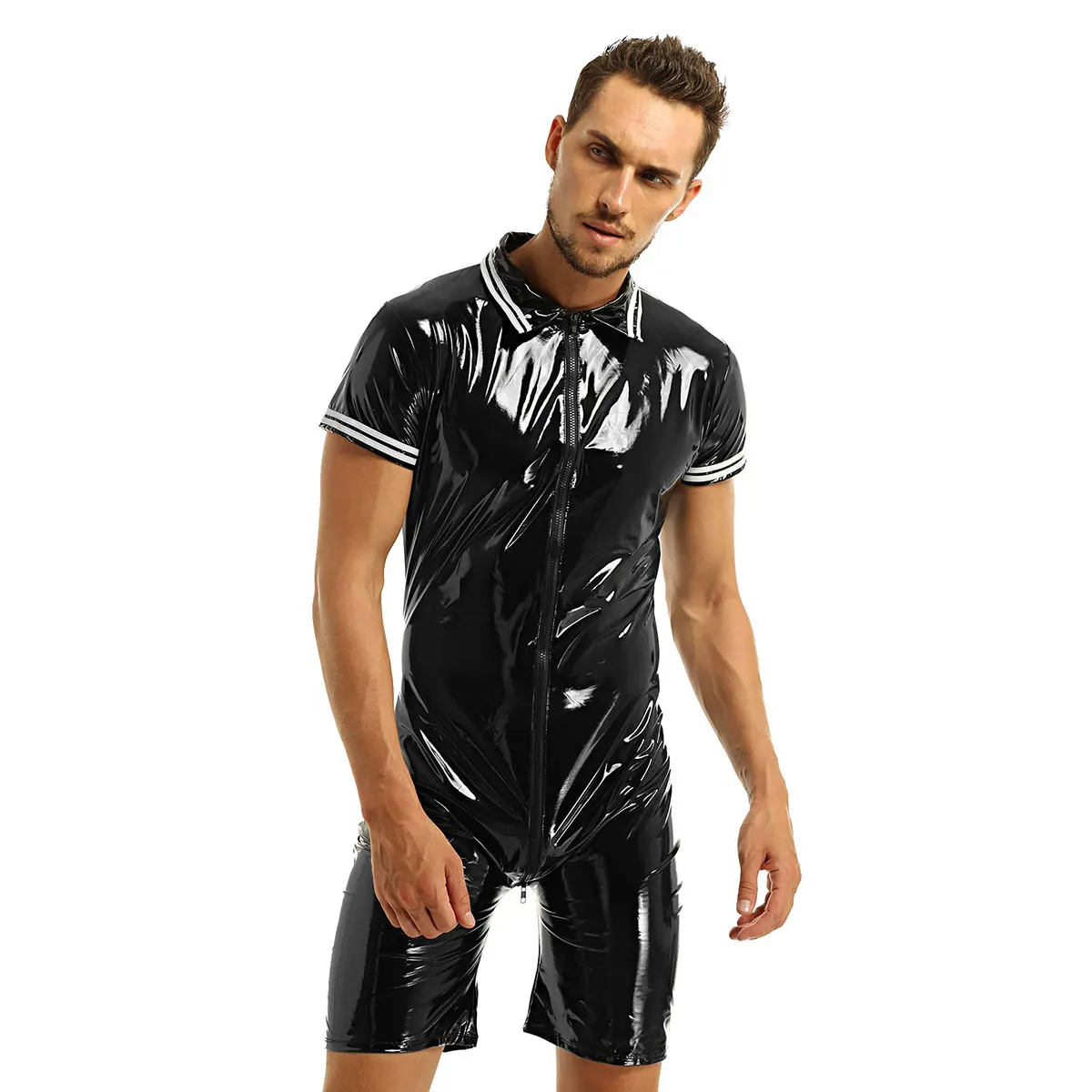 Мужской латексный купальник-боди, цельный, из лакированной кожи, боди, Клубная одежда, на молнии, с открытым шаговым швом, Комбинезон Wetlook, сексуальный комбинезон