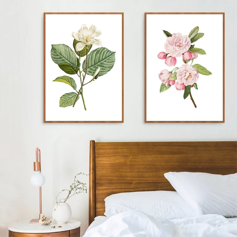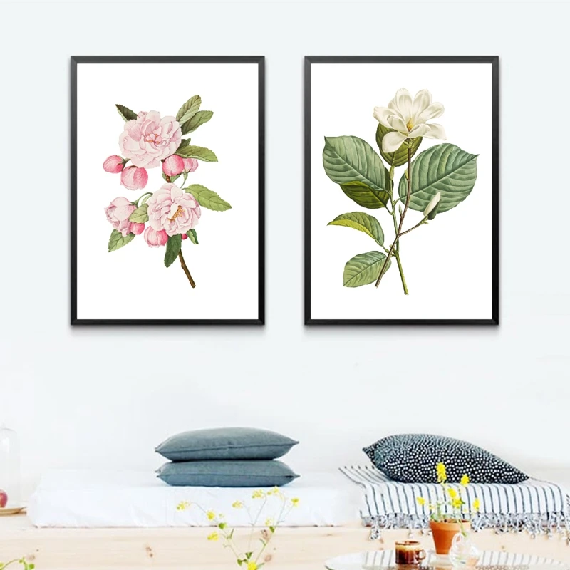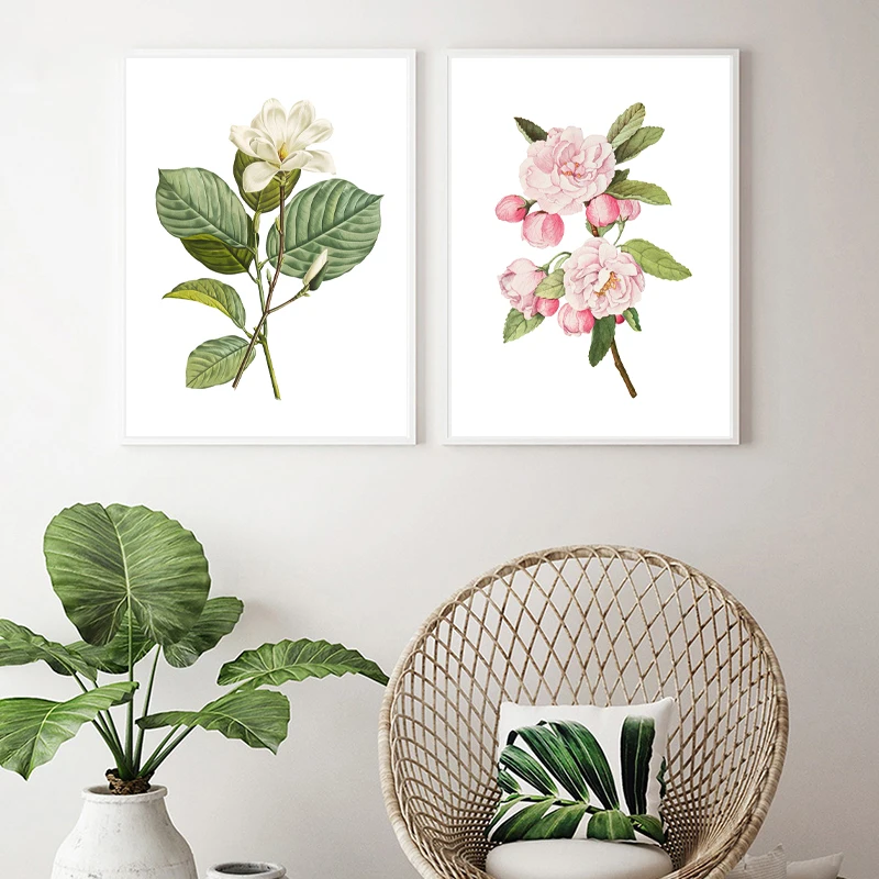 Белый цветок Магнолия Юлан ботанический принт розовые цветы Краб Яблоко Цветочный плакат растений настенная живопись холст картины для гостиной домашний декор для свадебных приглашений