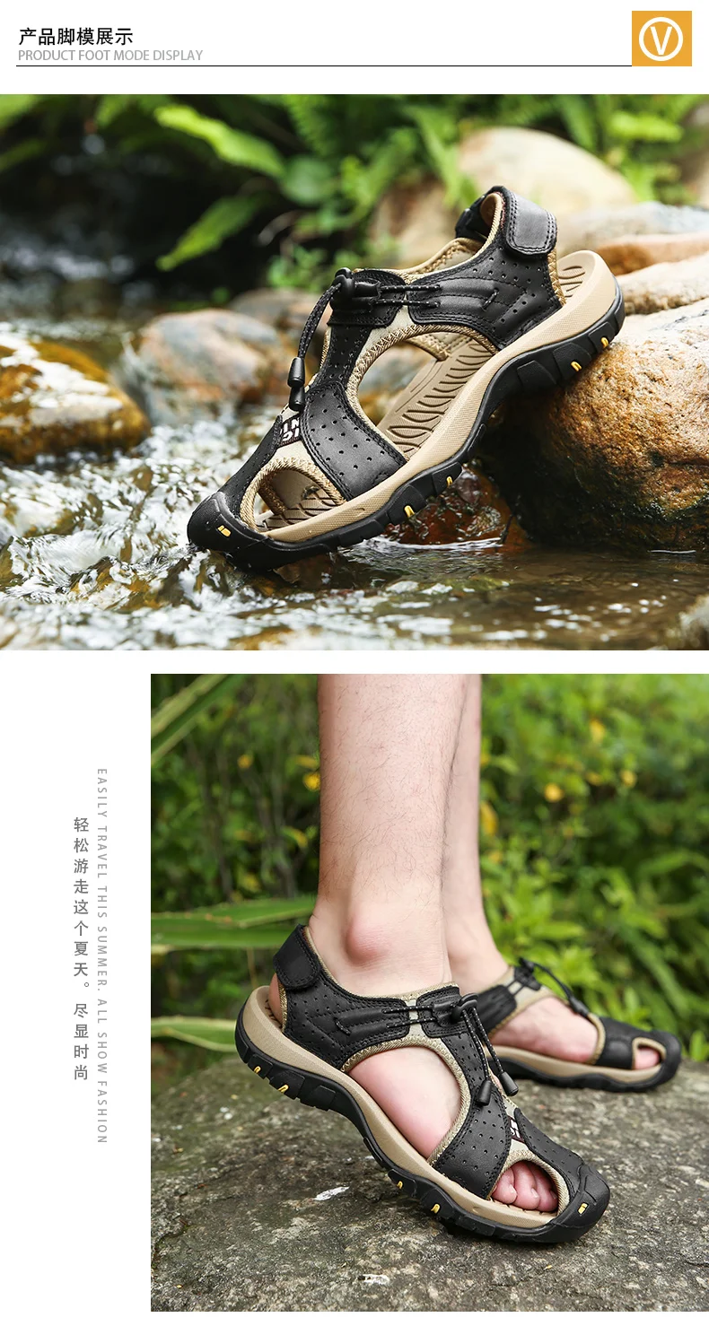 Классические мужские сандалии, летние пляжные сандалии из натуральной кожи