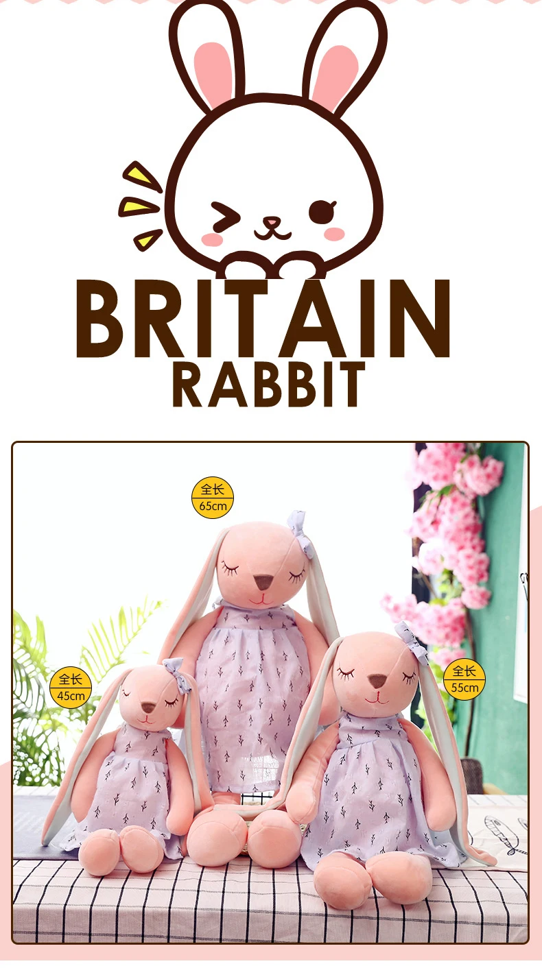 Игрушка плюшевая kawaii с длинными ушками кролик 1 шт., удобные куклы для сна, набивные мягкие игрушки-животные, милый кролик для девочек
