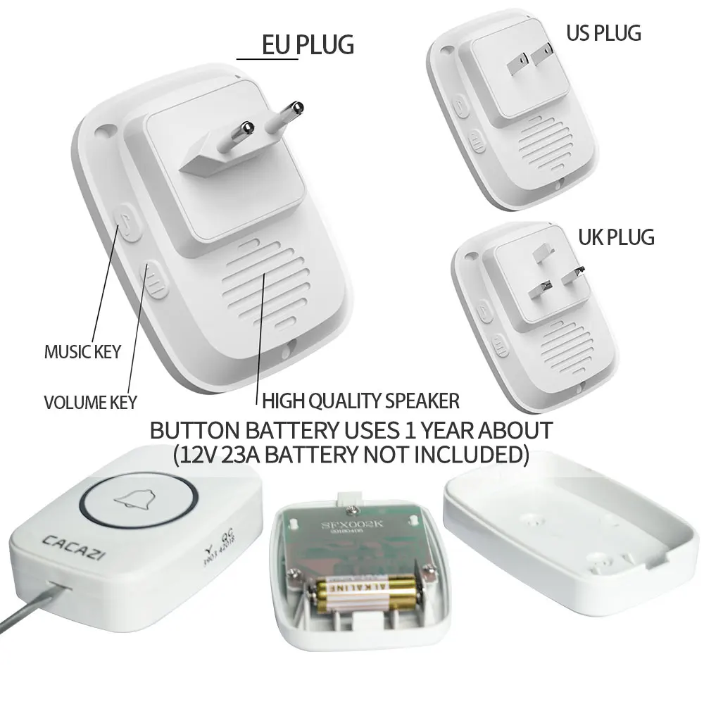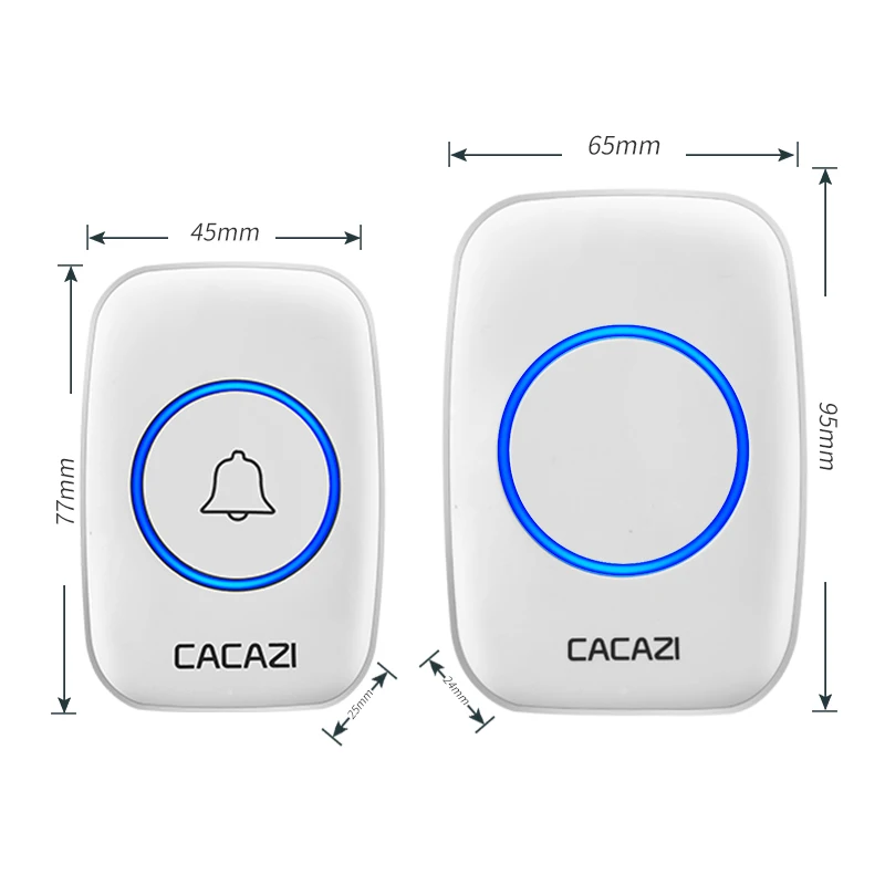 Беспроводной водонепроницаемый дверной звонок CACAZI, диапазон 300 м, штепсельная вилка стандарта США, ЕС, Великобритании, Умный домашний звонок, 60 звонков, 0-дБ, беспроводной звонок для звонков