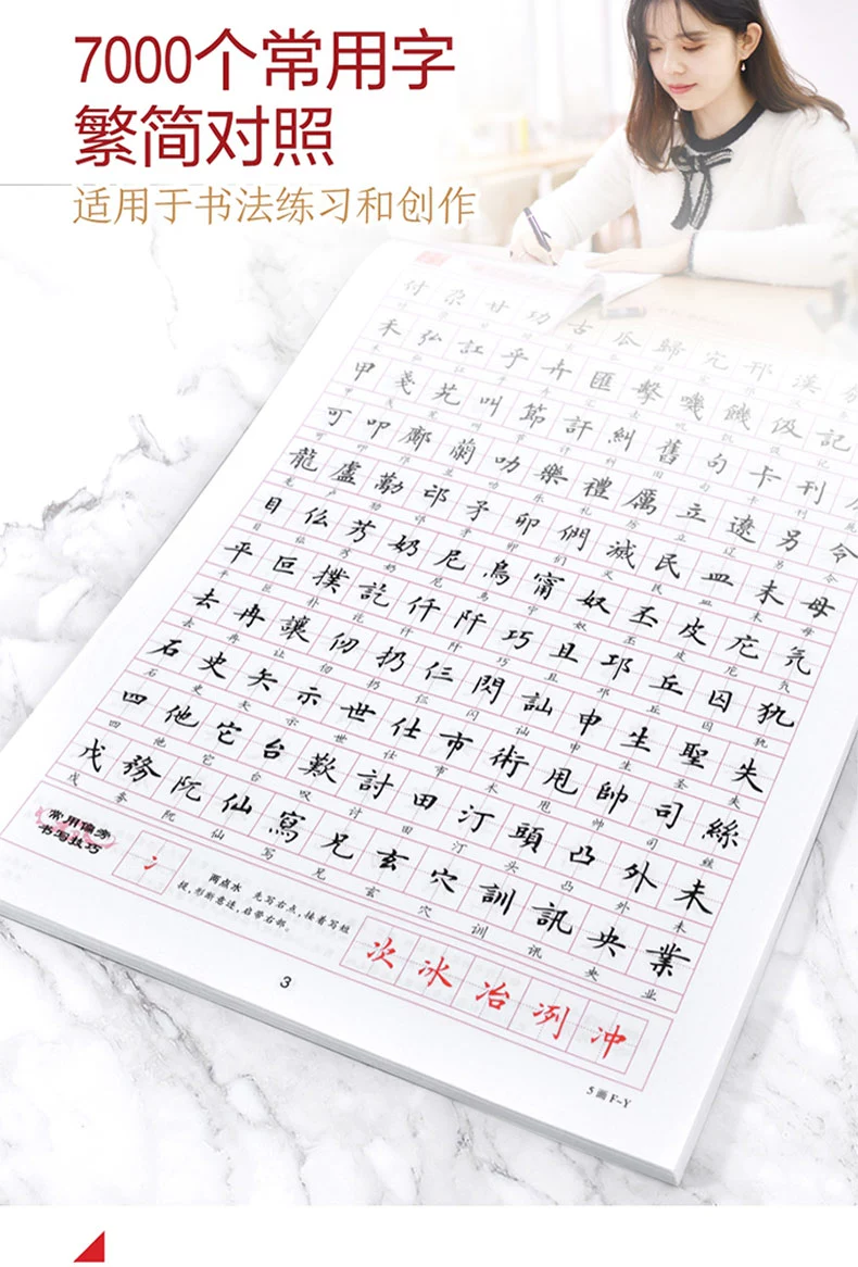 Тетрадь с китайскими иероглифами Kai Shu,Xing Shu,Xing Kai, китайская Ручка для каллиграфии, 4 книги, 7000