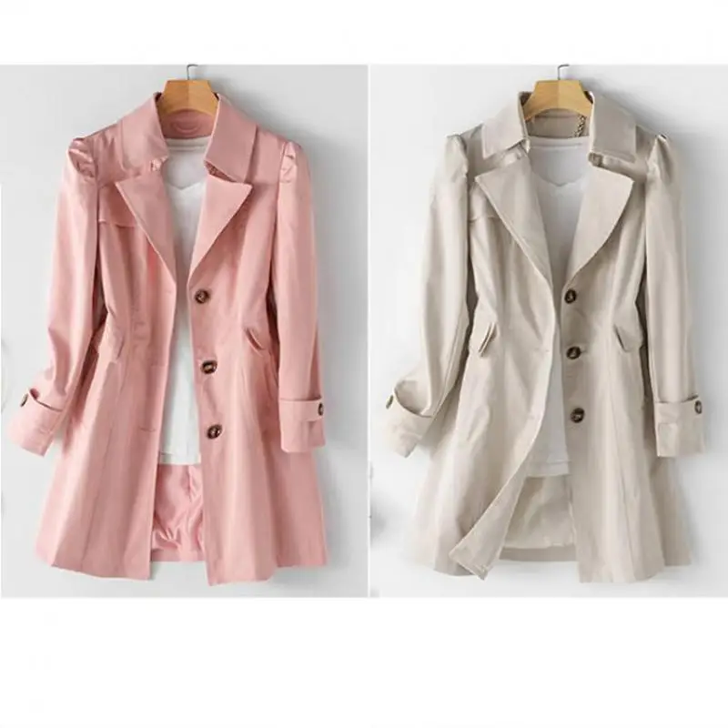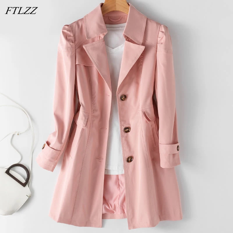 Женский Длинный Тренч FTLZZ, облегающая однобортная ветровка в Корейском стиле, Повседневная Уличная одежда цвета хаки, на осень