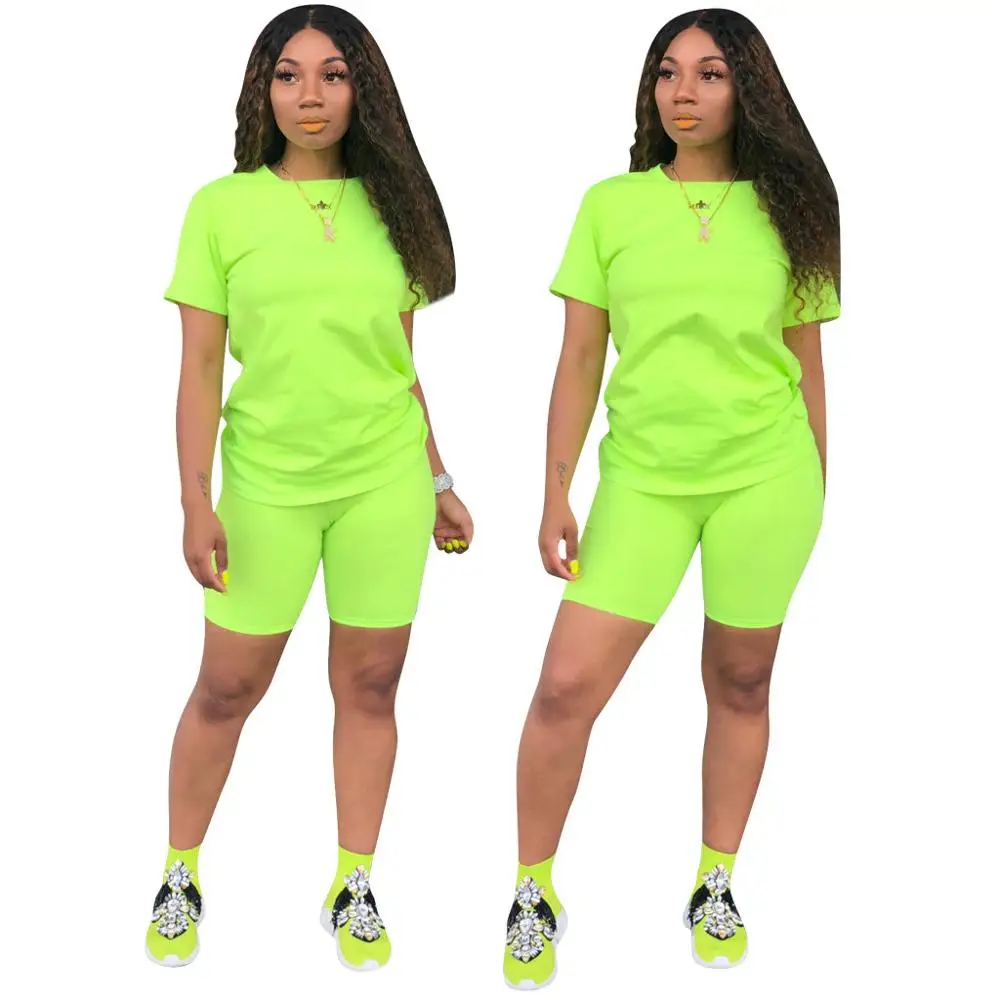 Женский спортивный костюм, комплект из 2 предметов, однотонный укороченный топ с коротким рукавом, футболка, короткие штаны, костюм, женский комплект для бега, спортивная одежда для фитнеса