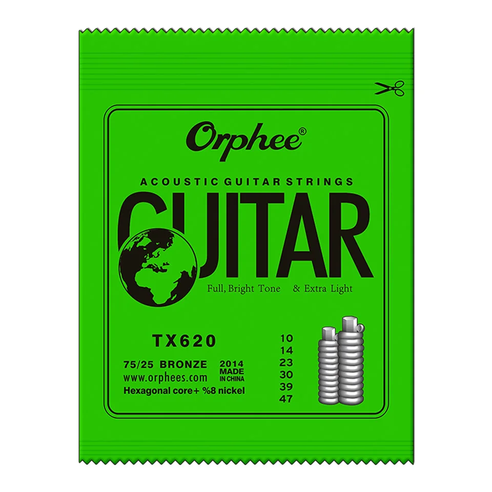 Orphee горячая Распродажа 510 набор струн для акустической гитары, шестигранный сердечник, никелевая, полностью яркая струна для акустической гитары TX620TX630TX640