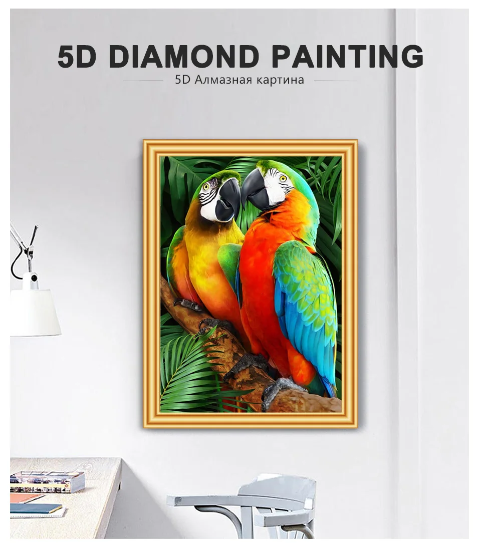 Алмазная вышивка с животными, квадратная мозаика, картина для стразы, декор 5D, алмазная живопись, вышивка крестом, попугай