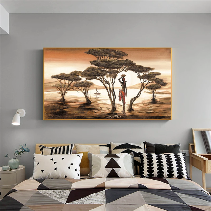 Африканская женщина настенные картины классический закат пейзаж стены Искусство Печать на холсте и плакаты Куадрос Картины домашний декор