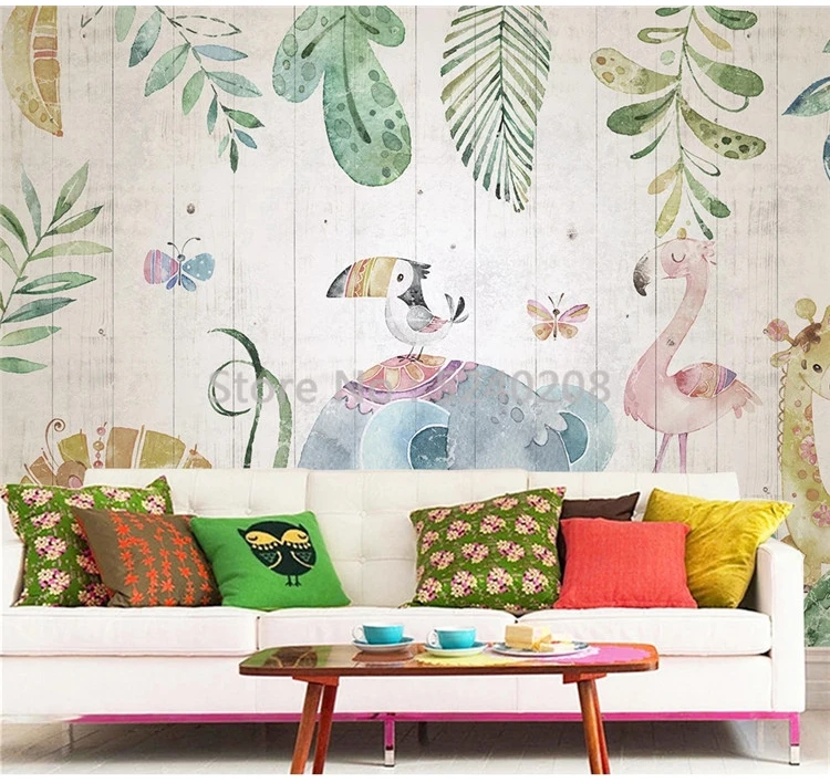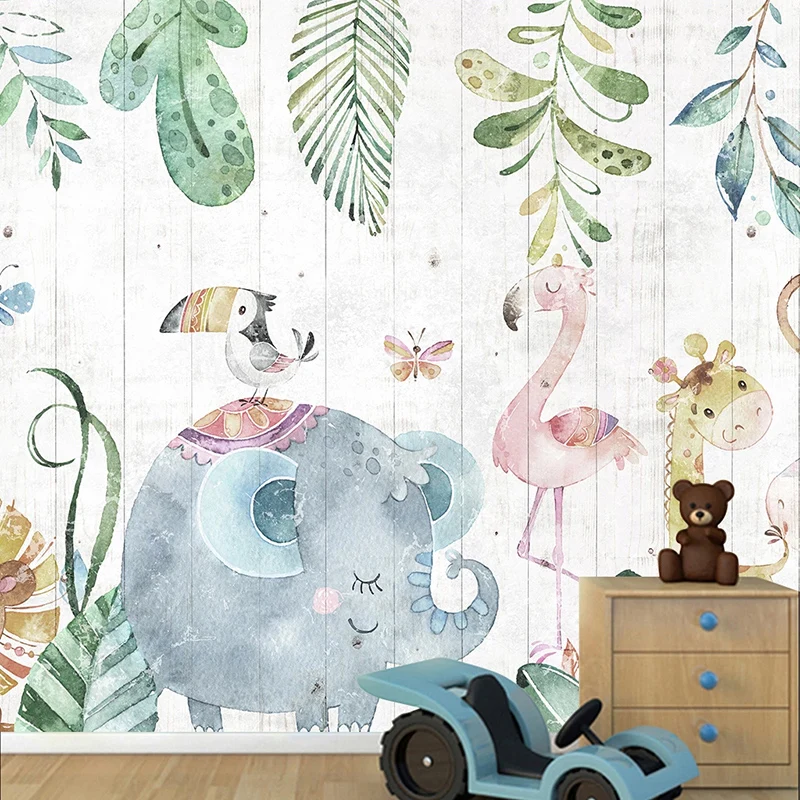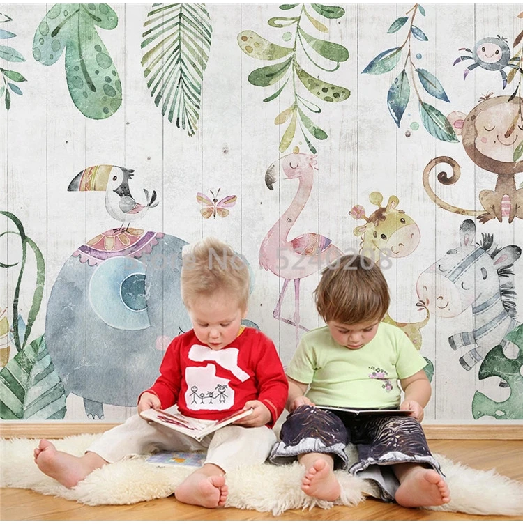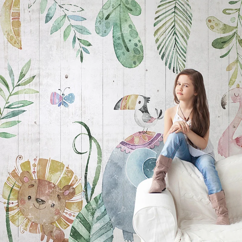 Настенные 3D обои ручной росписи, деревянная доска с изображением животных и леса, Фреска для детской комнаты, самоклеящиеся водонепроницаемые наклейки на стену