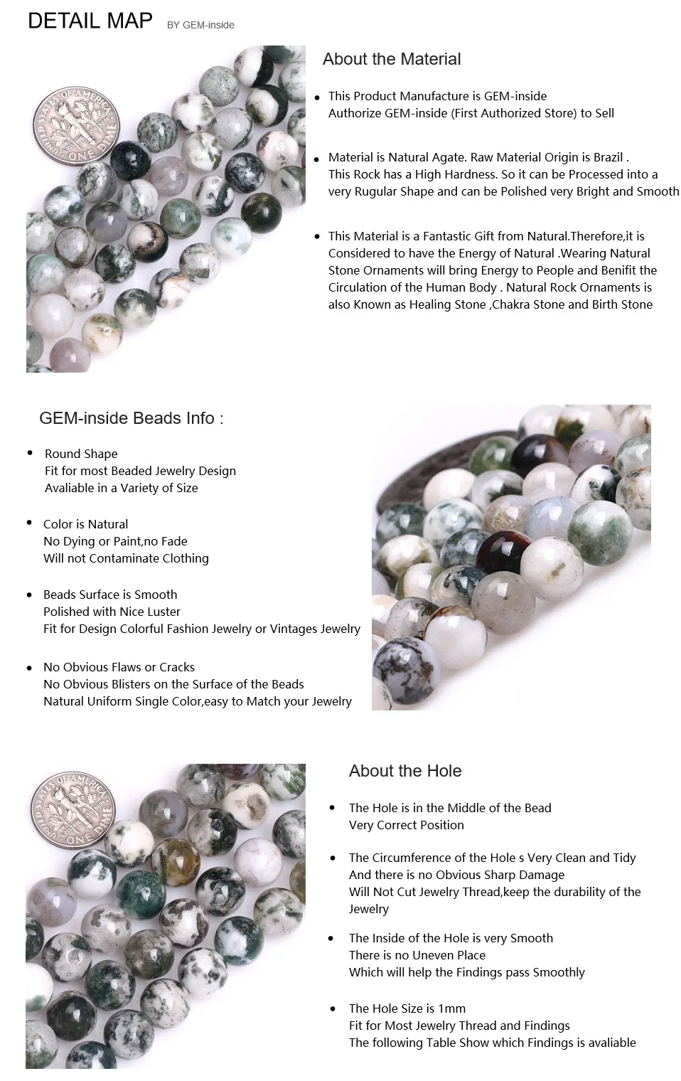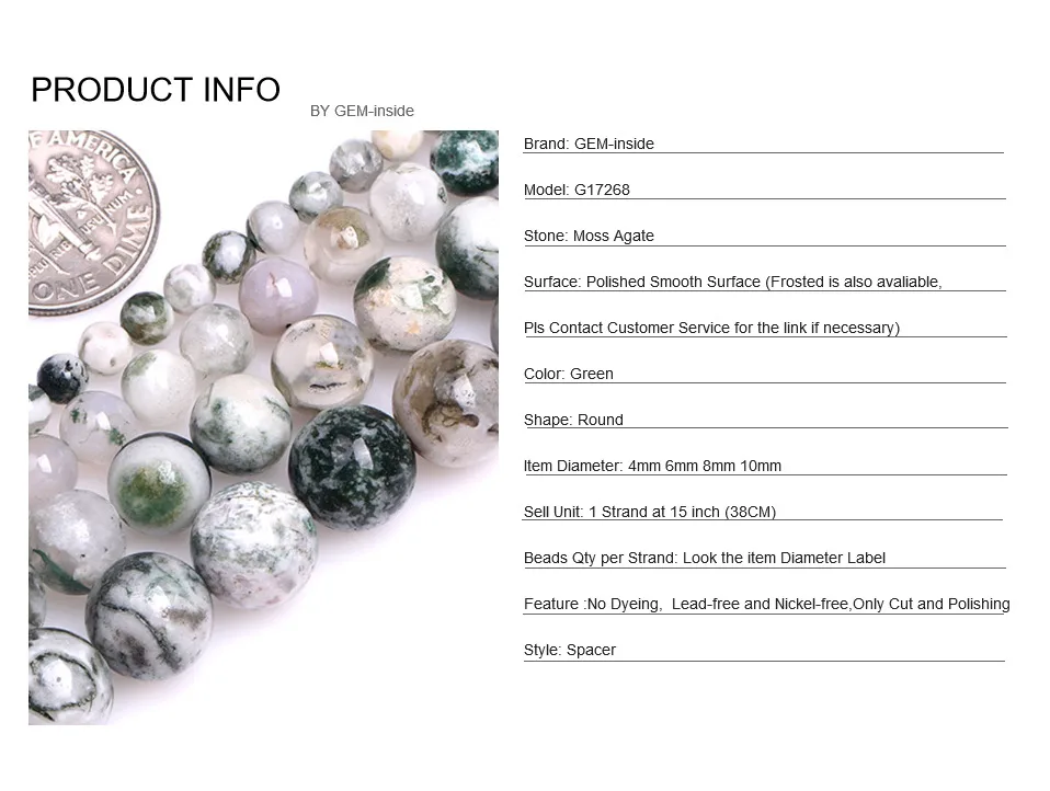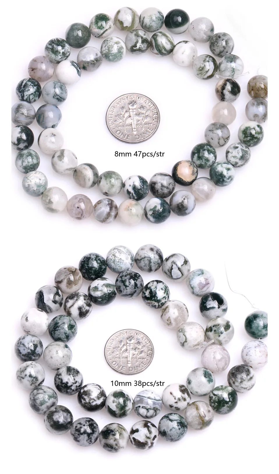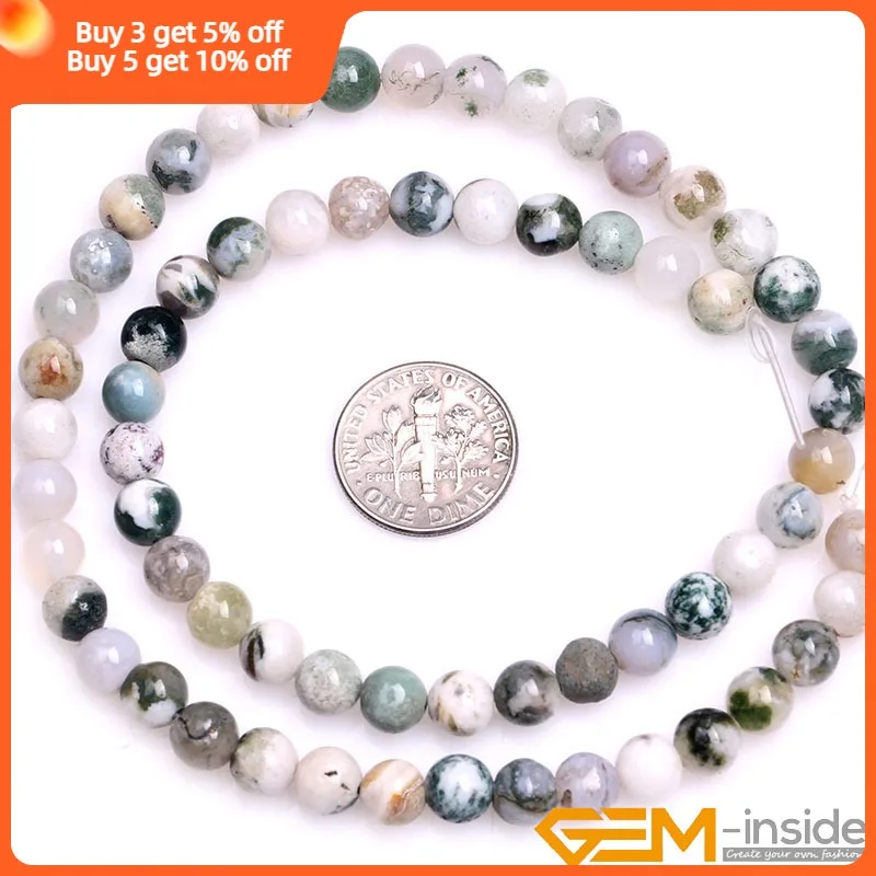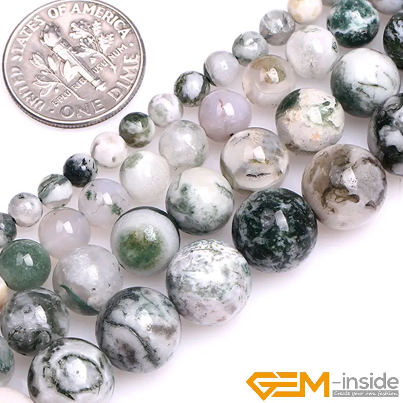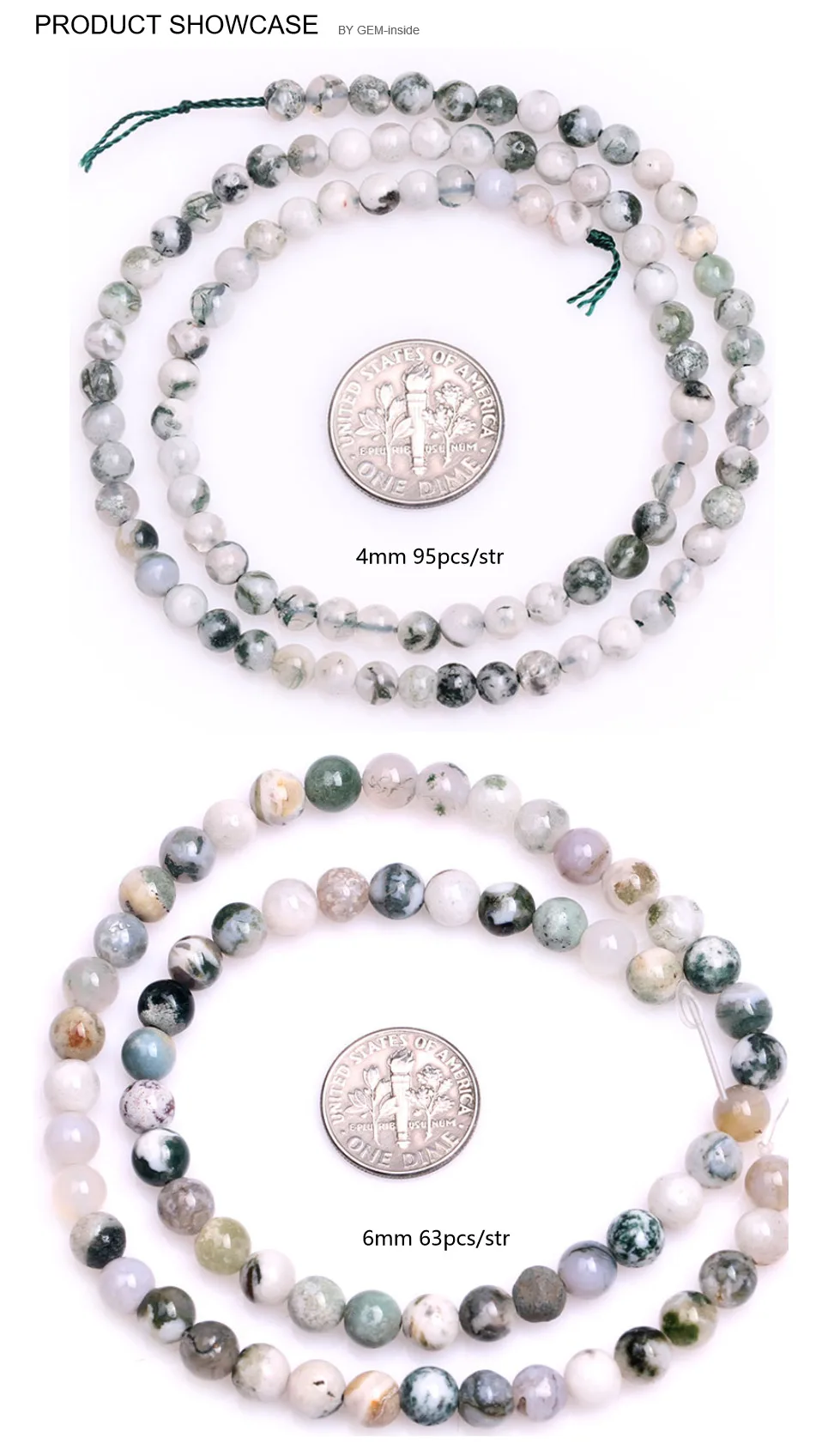 Натуральный камень, мох, агат, круглые бусины для изготовления ювелирных изделий, нитка 15 дюймов, для браслетов сделай сам, свободные бусины 4 мм, 6 мм, 8 мм, 10 мм