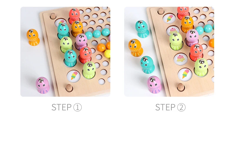 1. Палочки для еды 2. Рыбалка 3. Сопряжение памяти: Шаг 1: Выберите карту для запоминания и закройте рыбу через 1-2 минуты Шаг 2: Если вы откроете 2 одинаковых узора подряд, рыба будет принадлежать винеру 4. Цветовая классификация 5. Цветные шарики с высоким слоем