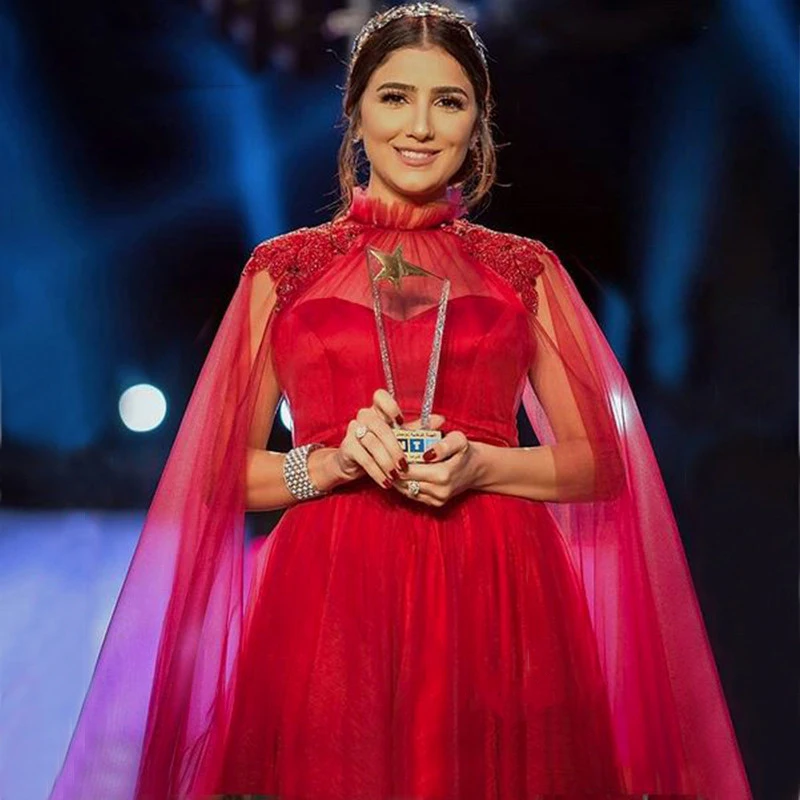 Красное платье знаменитости Sevintage с высоким воротником, Средний Восток, Дубай, Длинные плечи, шлейф, Тюлевое платье для выпускного вечера, вечерние платья, Abendkleider
