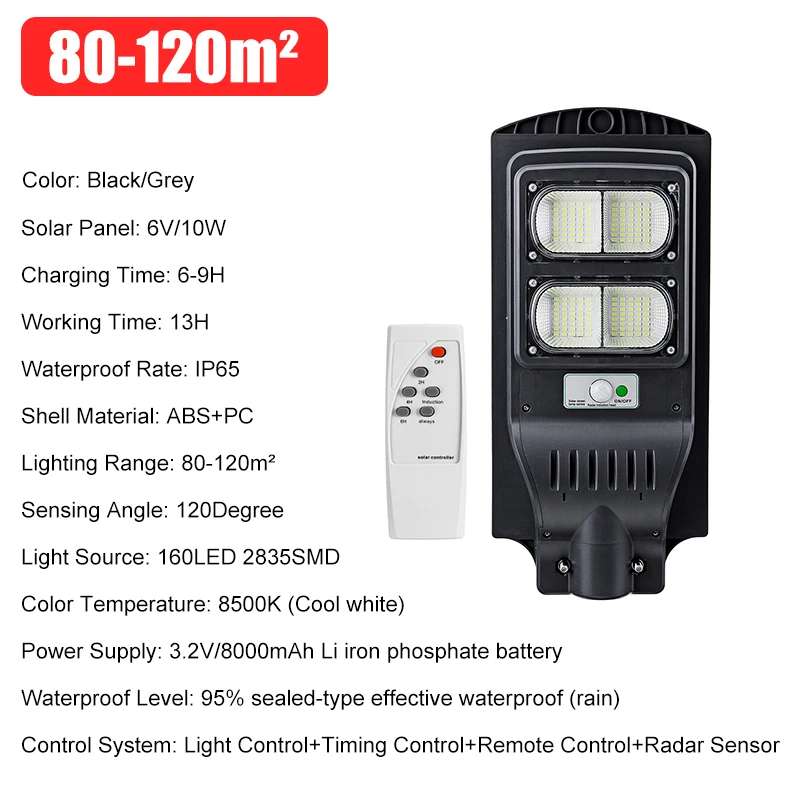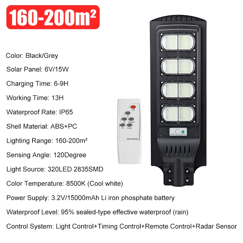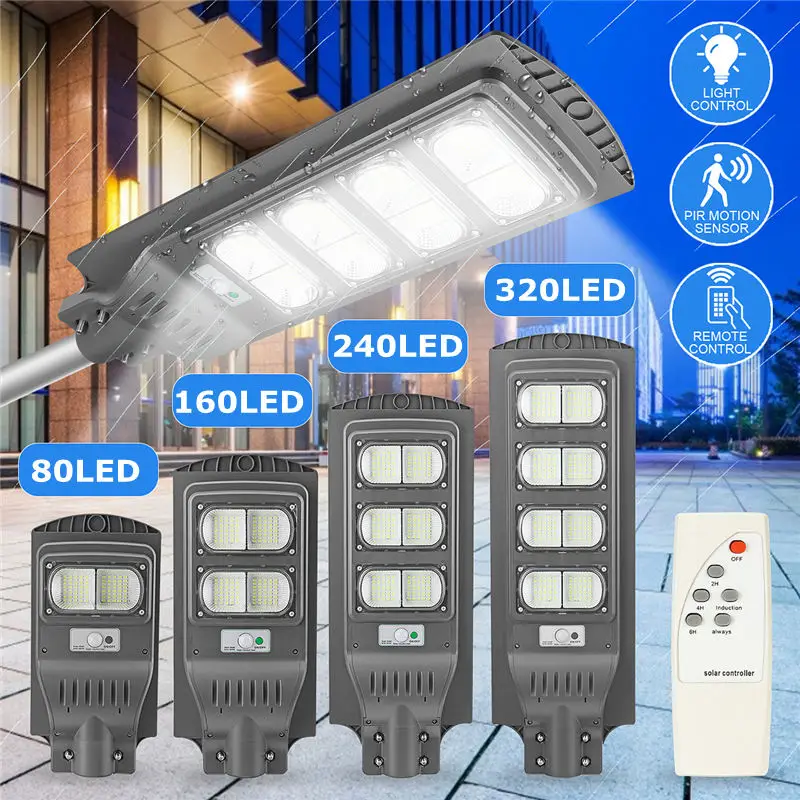 Водонепроницаемый уличный светильник IP65 с дистанционным управлением, светодиодный уличный фонарь на солнечной батарее светильник 80 Вт 160 Вт 240 Вт 320 Вт с пассивным ИК датчиком движения, радар, Солнечная лампа