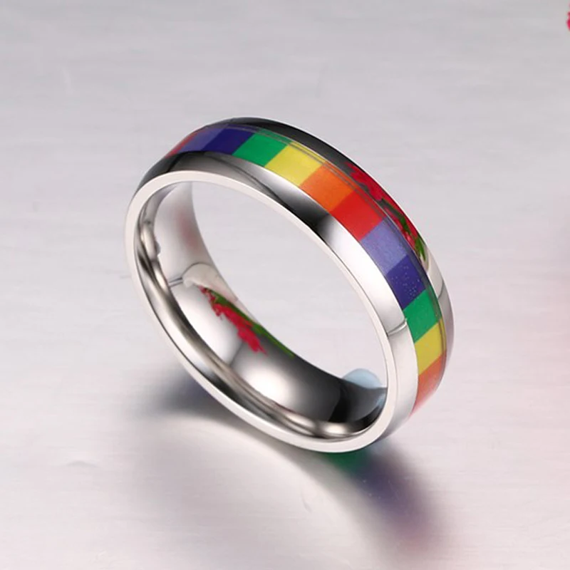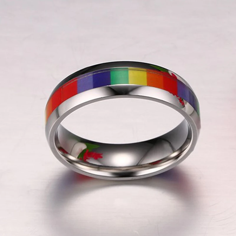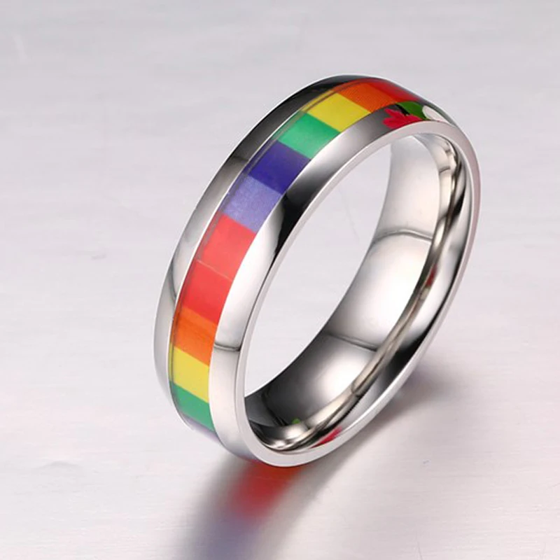 Радужные кольца для лесбиянок, серебристого цвета, из нержавеющей стали, ЛГБТ кольцо гордости, ширина 6 м