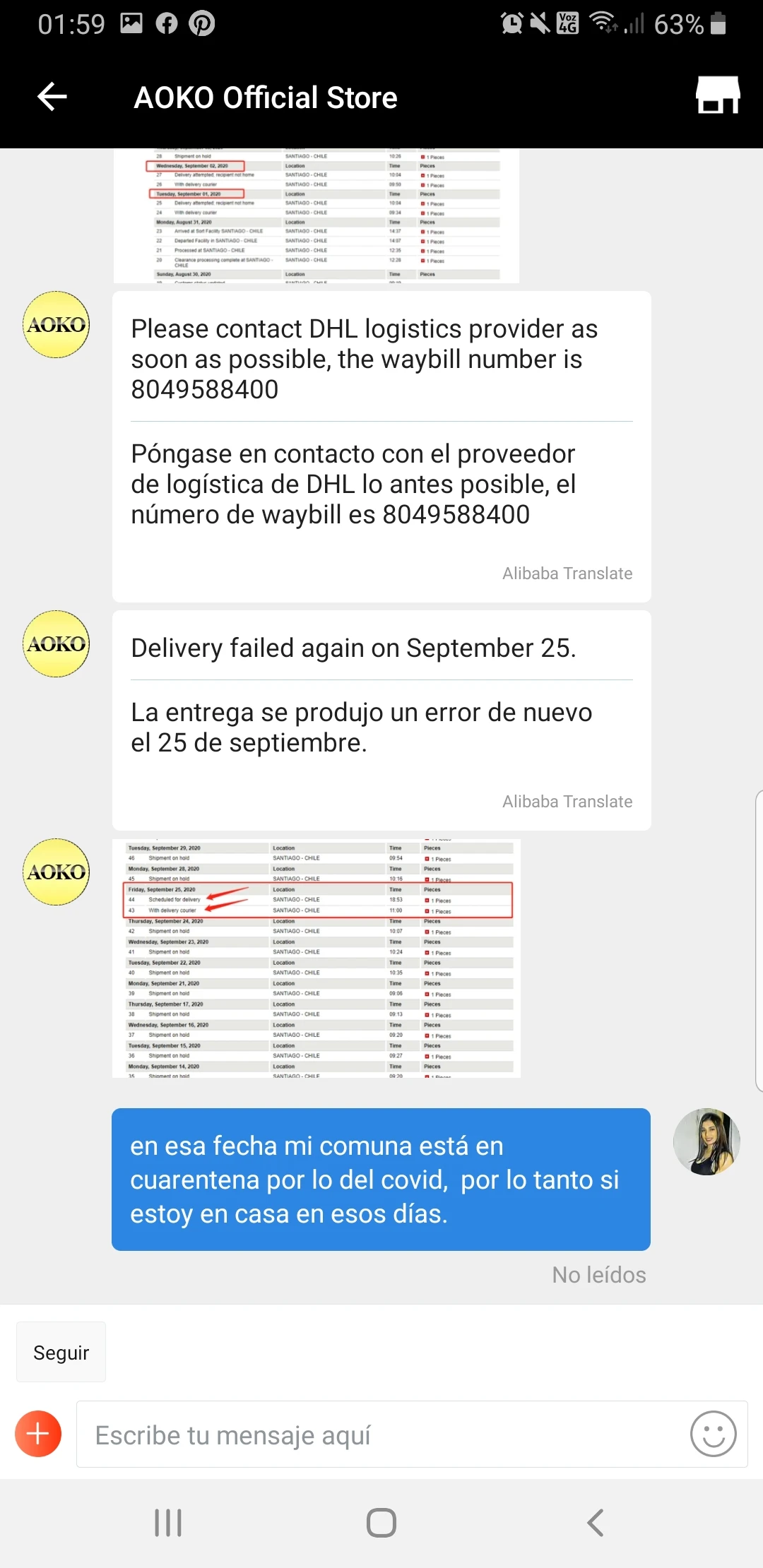 Очень плохой опыт, моя посылка была возвращена, DHL говорит мне, что отправитель не отправил мои контактные данные для доставки, из-за того, что я всегда находил себя в своем доме. Aliexpress заряжает меня за доставку, это нечестно, так как это не моя ответственность, очень плохой сервис от вас. И DHL.