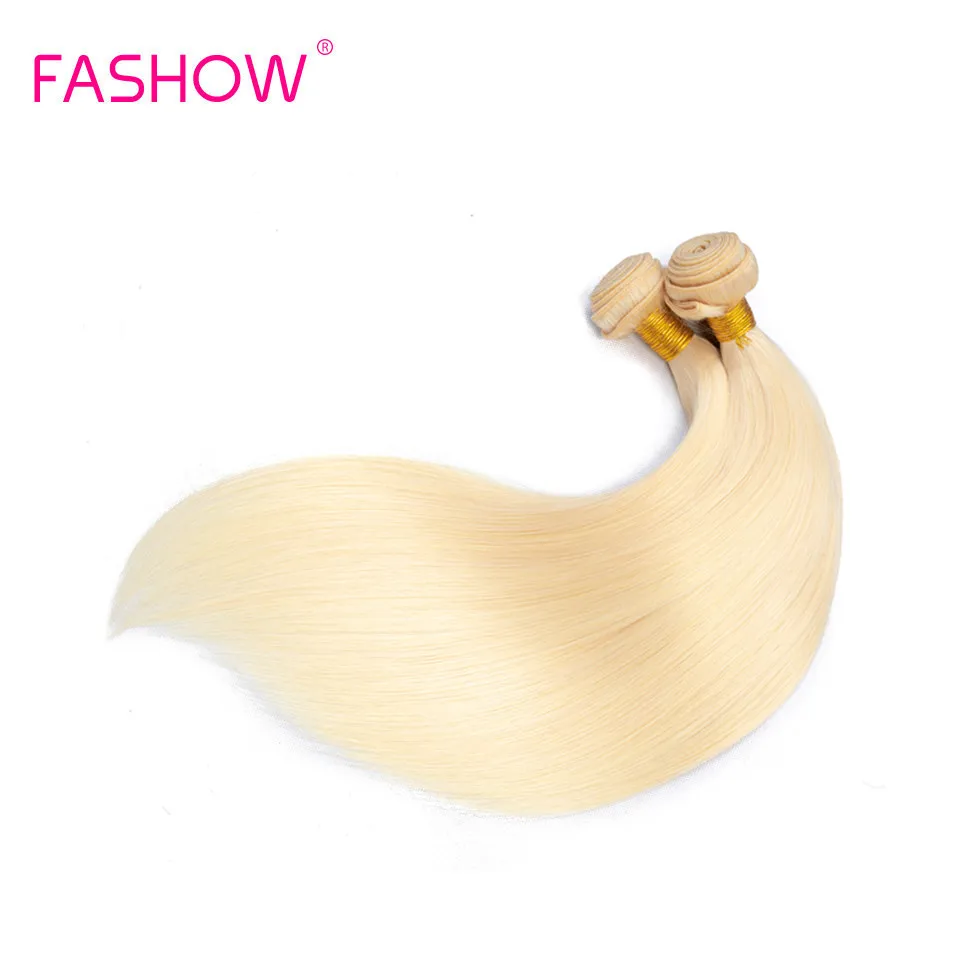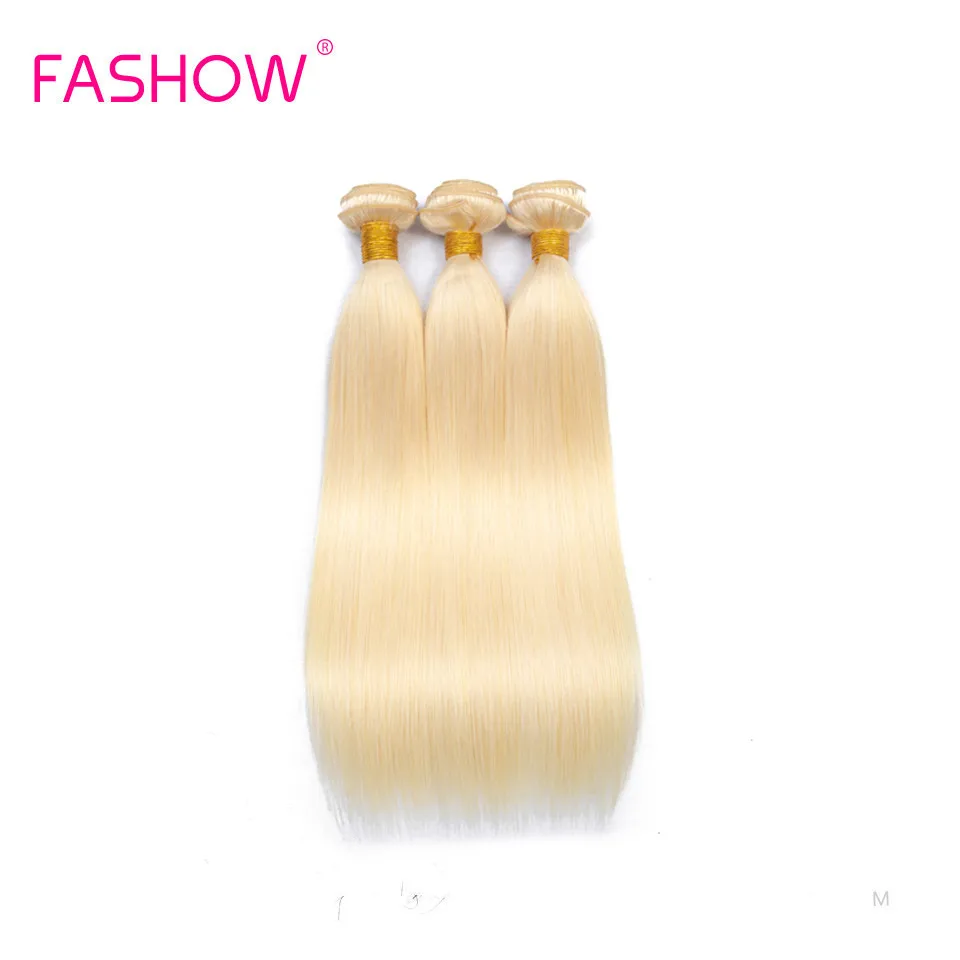 Пупряди светлых натуральных волос Fashow, 3 PCS Бразильские волосы пряди, волнистые 613 прямые пряди волос, наращивание волос Реми