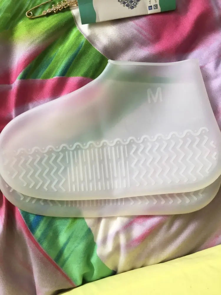 Галоши - прикольные. Прочные силикон. Подошва толще, чем боковушки. Но есть нюанс. Категорически ошибся с размером. Взял М, типа - размер 35-41. Но по факту еле налезли на голую ногу 38. На обувь 38 надеть не получится. Поэтому - берите с запасом.
