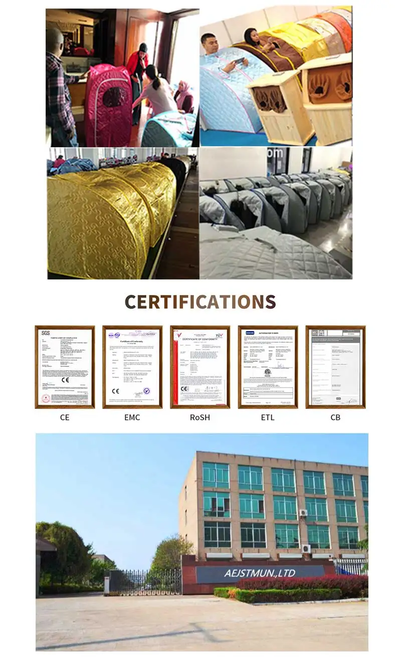 AEJSTMUN является профессиональной компанией, которая занимается производством и продажей здоровья, красоты, тела домашней паровой сауны, дальней инфракрасной сауны, парогенератора, а также других серий. С CE, ROHS, REACH, SASO, SAA, EAC одобрением, AEJSTMUN сауна и спа популярны в Европе, США, на востоке, Юго-Восточной Азии, Южной Корее, Японии, и других стран и регионов.
