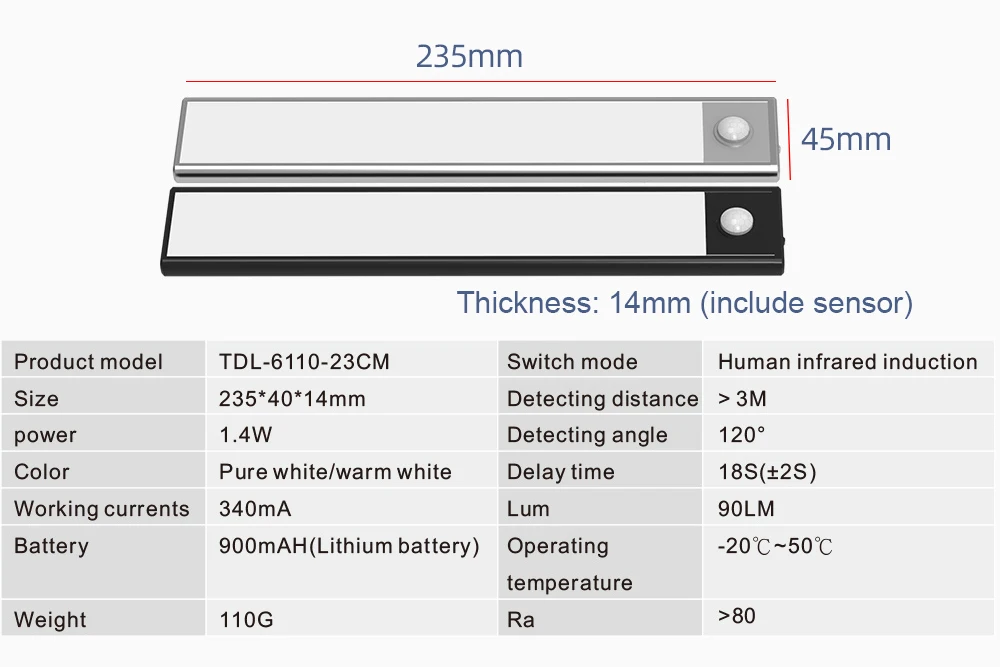 Термодатчик движения под шкафом, 102030405080 см, светодиодный, пер...