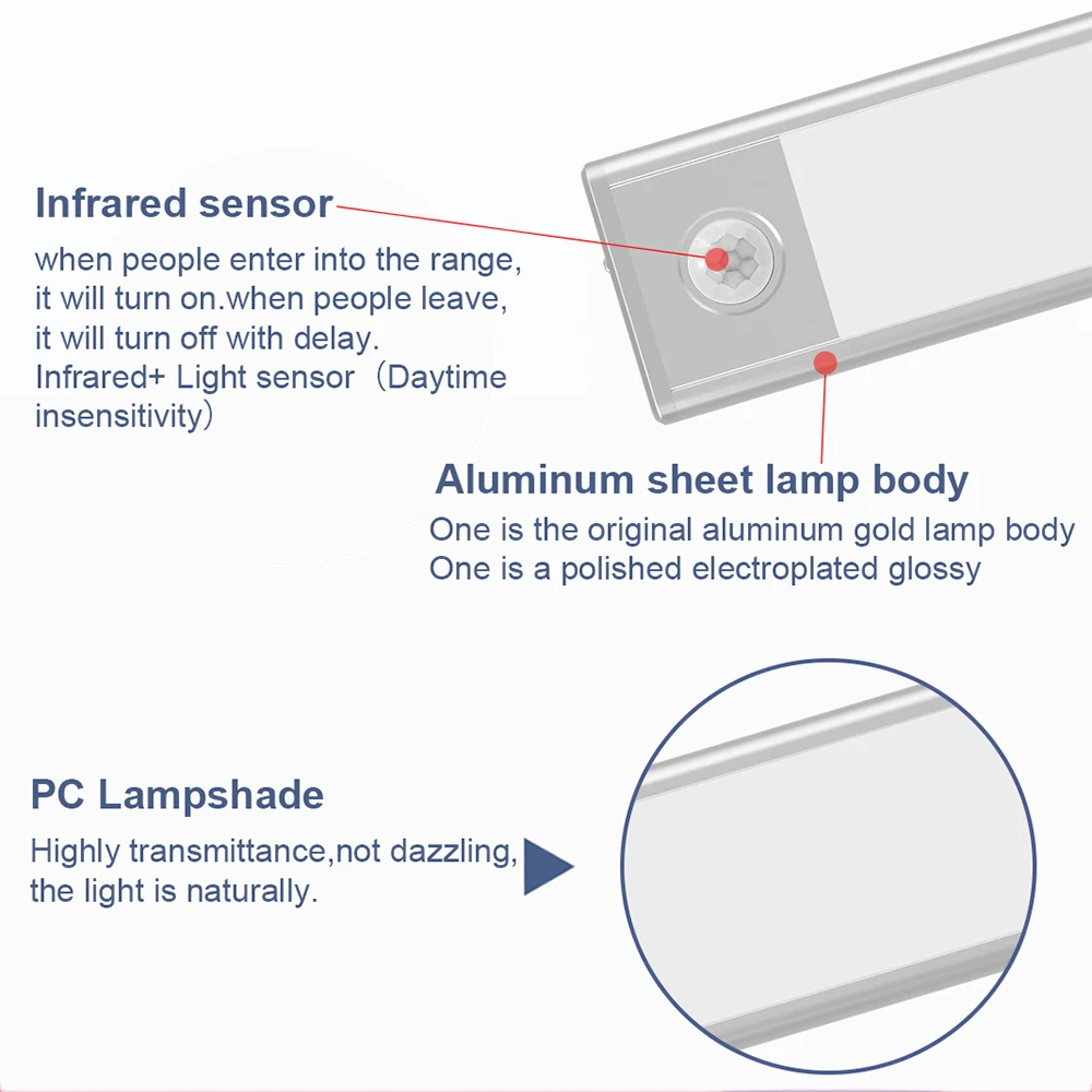 Новый светильник для шкафа 122340 см с пассивным ИК датчиком движения, тепловой светодиодный светильник с зарядкой от USB, ультратонкий ночник с алюминиевым корпусом