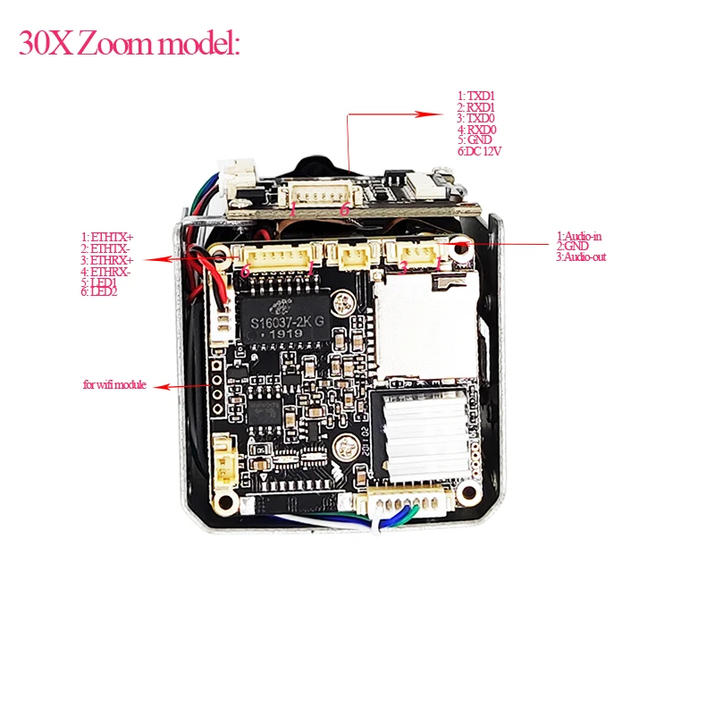 * Поддержка памяти карт TF макс. 128 ГБ, 30x zoom слот для карт TF подключается кабелем FPC (tf карта не входит в комплект)