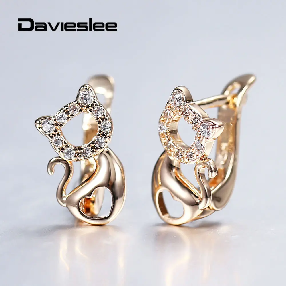 Женские серьги s, 585 пробы, розовое золото, маленькая кошка, котенок, ПЭТ, проложенный прозрачный кубический циркон, серьги-гвоздики для женщин, вечерние свадебные украшения, LGE293