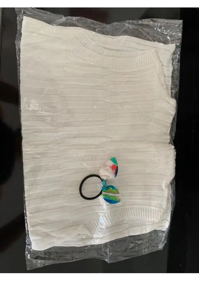 Топ неплохой, но по качеству синтетика. У кого аллергия, будет неприятно телу. В подарок продавец положил резинку для волос. Доставка быстрая.