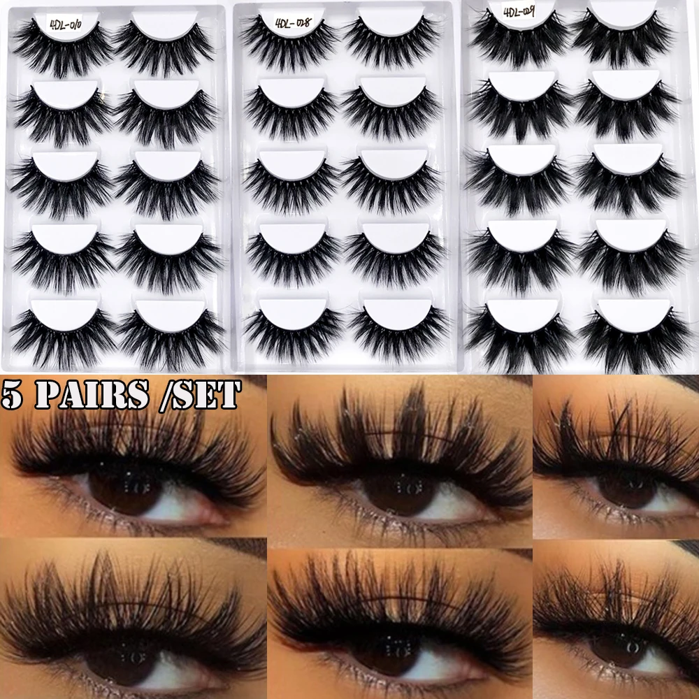 5 пар, 4D искусственные норковые накладные ресницы, пушистые ресницы с крестом-накрест, толстые натуральные длинные ресница ручной работы, не требующие жестокого обращения инструменты для макияжа глаз