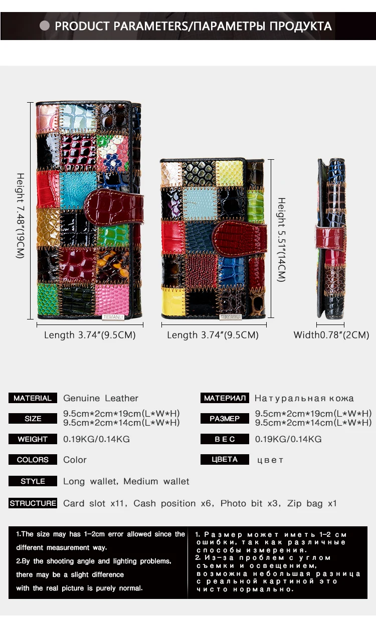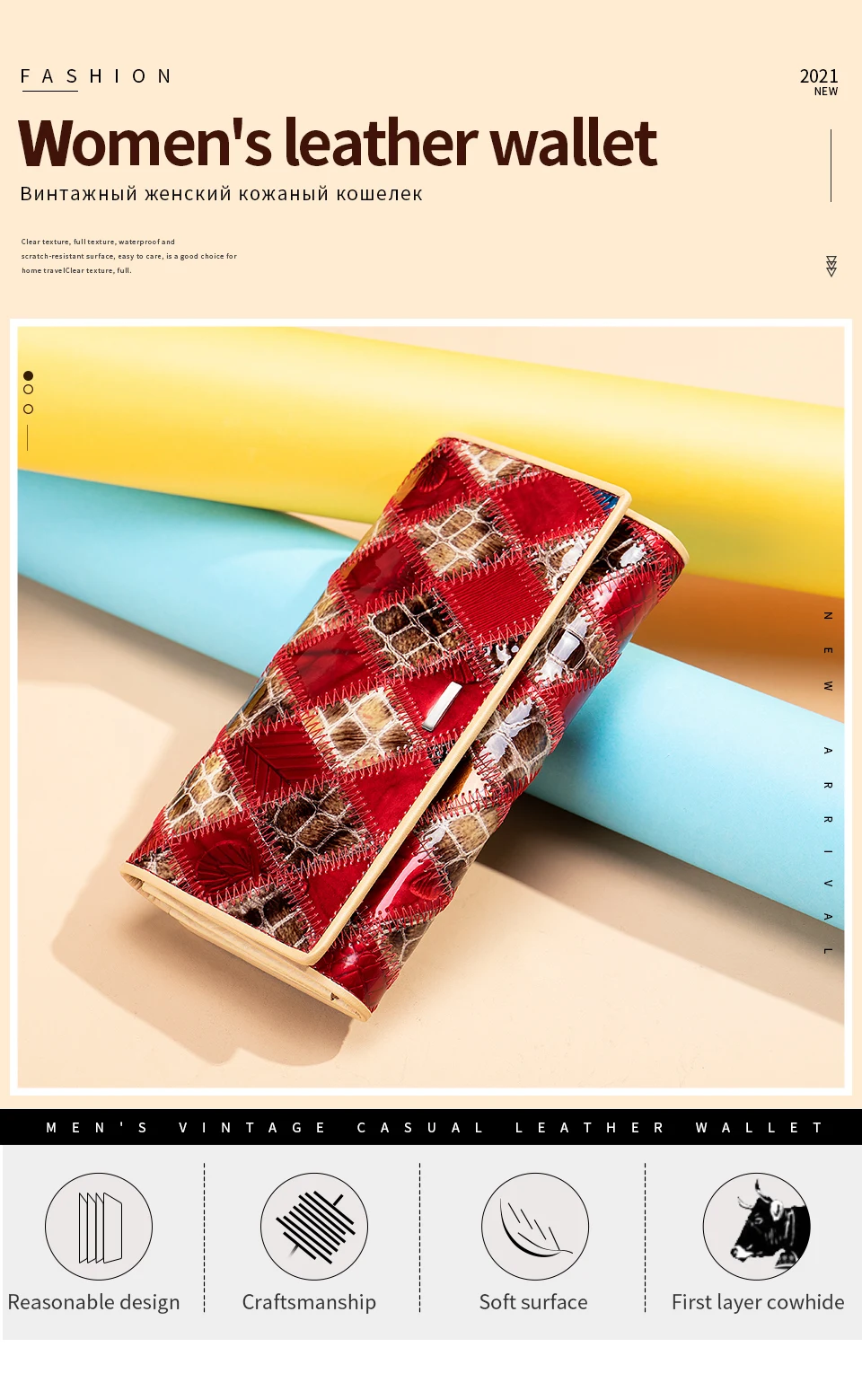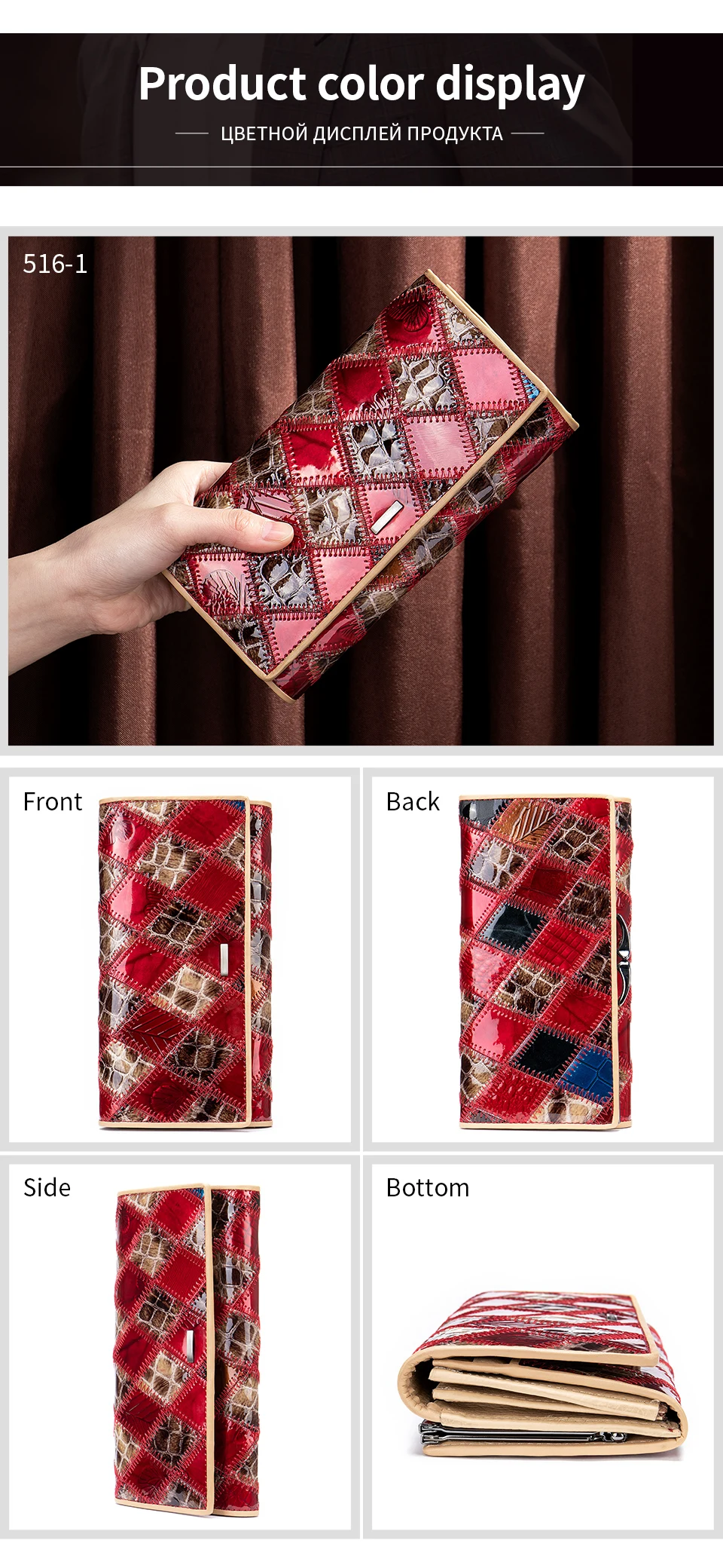 Кошелек женский из натуральной кожи, с отделением для монет и монет, длинный, 4202