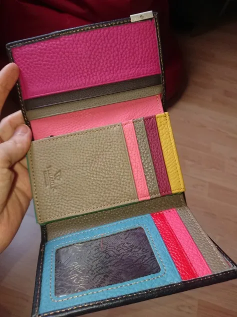 кошелек - огонь! очень красивый и по-видимому прослужит долго, добротный. спасибо рродавцу. только шла посылка ооочень долго. пришлось понервничать(( пахнет, правда, не очень... но, надеюсь, выветрится.