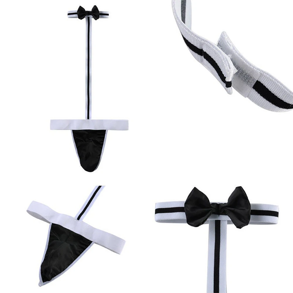 Сексуальное эротическое нижнее белье с галстуком-бабочкой, мужское эластичное нижнее белье, костюм Официанта, боди, комбинезон