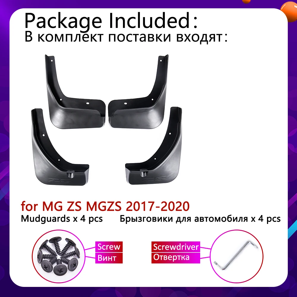 Брызговики для MG ZS MGZS 2017, 2018, 2019, 2020, 4 шт.