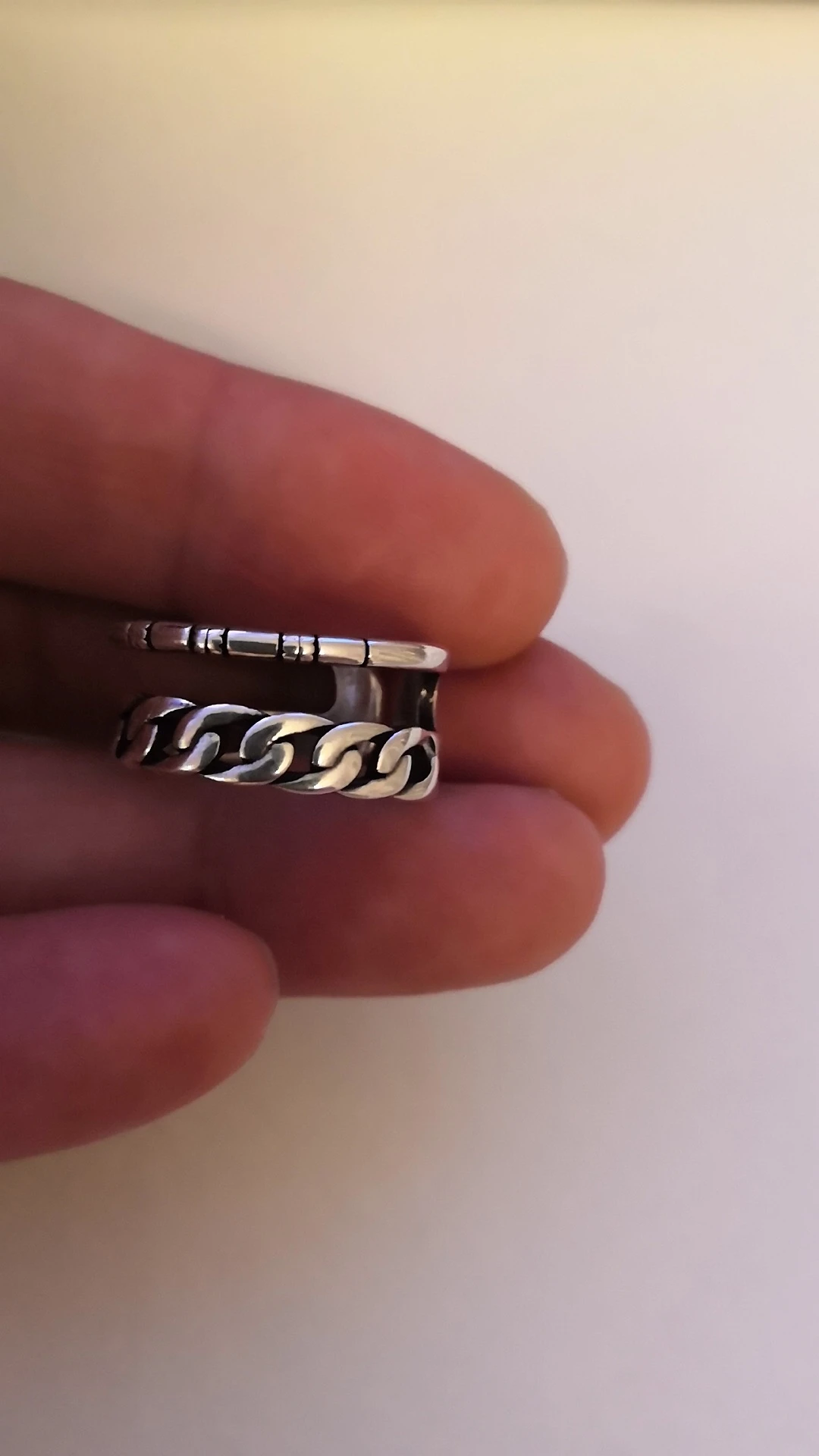 Не знаю, серебро ли, но выглядит достойно и стильно. Сидит комфортно на пальце 16-го размера ( не слетает, но и не давит, в самый раз)