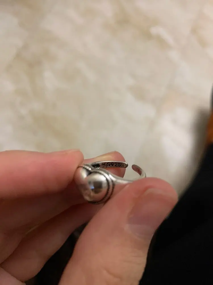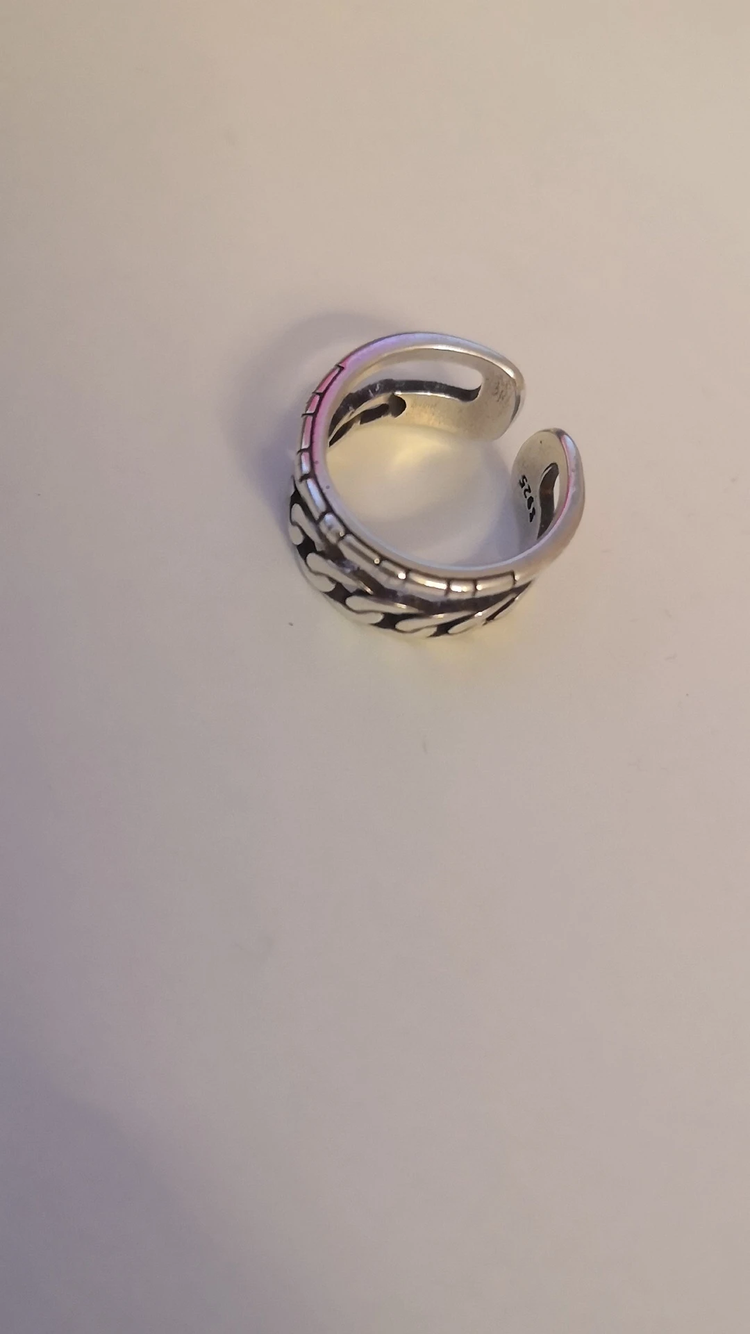 хорошее кольцо. соответствует описанию. доставка до омска 24 дня. стоит проба 925, но скорее всего, это по приколу. само кольцо ровное, без дефектов. чуть состаренное, чернёное. размер регулируется туго. оно не большое и лучше будет смотреться на тонких изящных пальцах. на 20 рр пришлось увеличить. всё ок. рекомендую