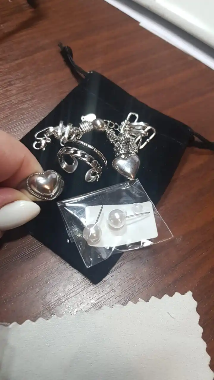 Только что получил мой пакет. Занимает около 2 недель. Я получил несколько подарков: ткань, черная бархатная сумка и 2 пары сережек. Кольца тоже очень красивые. Кольца в форме сердца меньше, что идеально. Имеется штамп 925 пробы. Мне очень нравится. Я рекомендую продавцу.