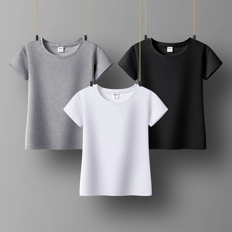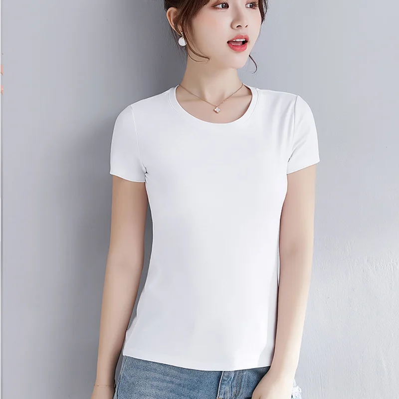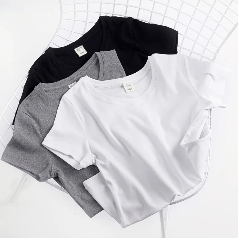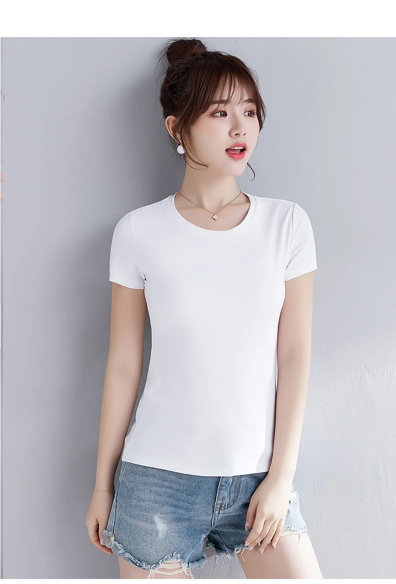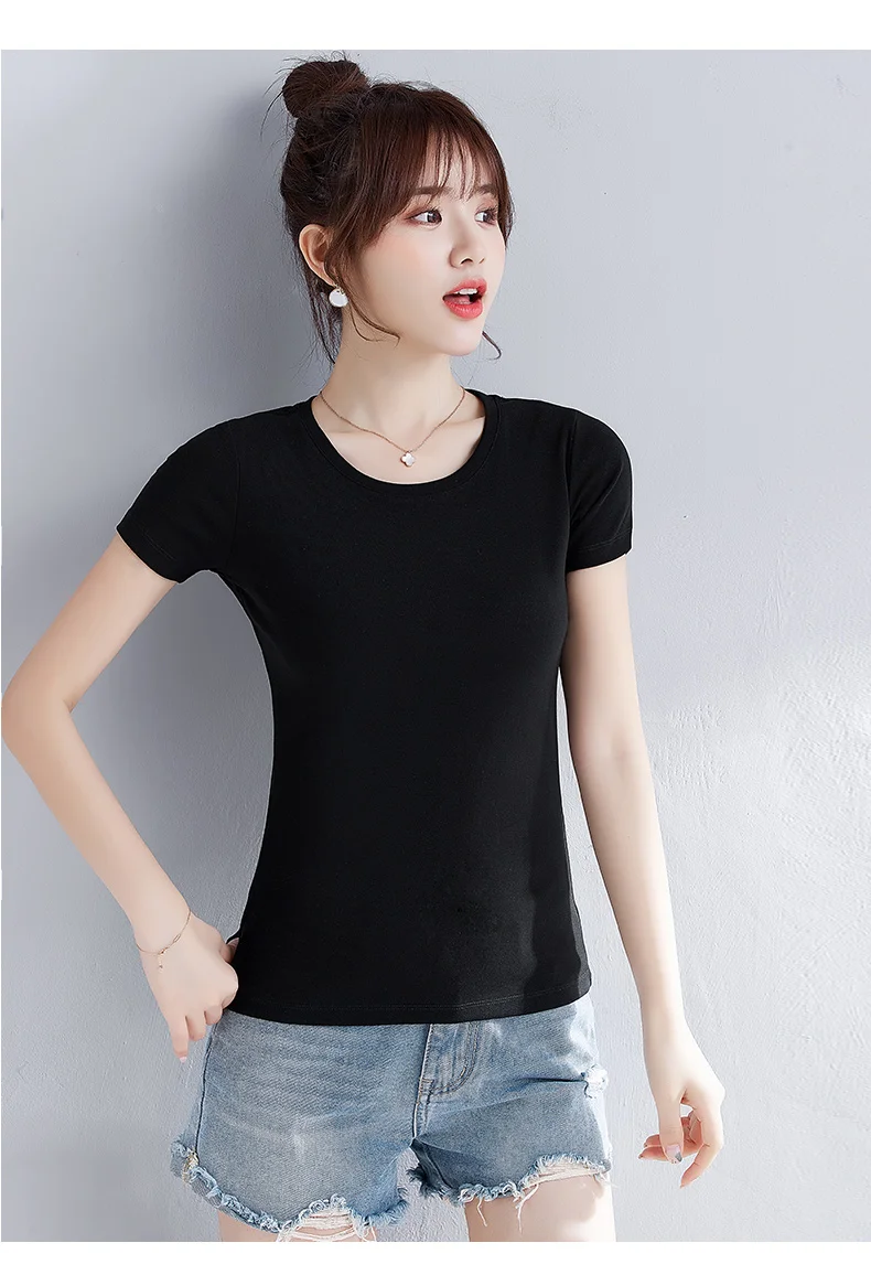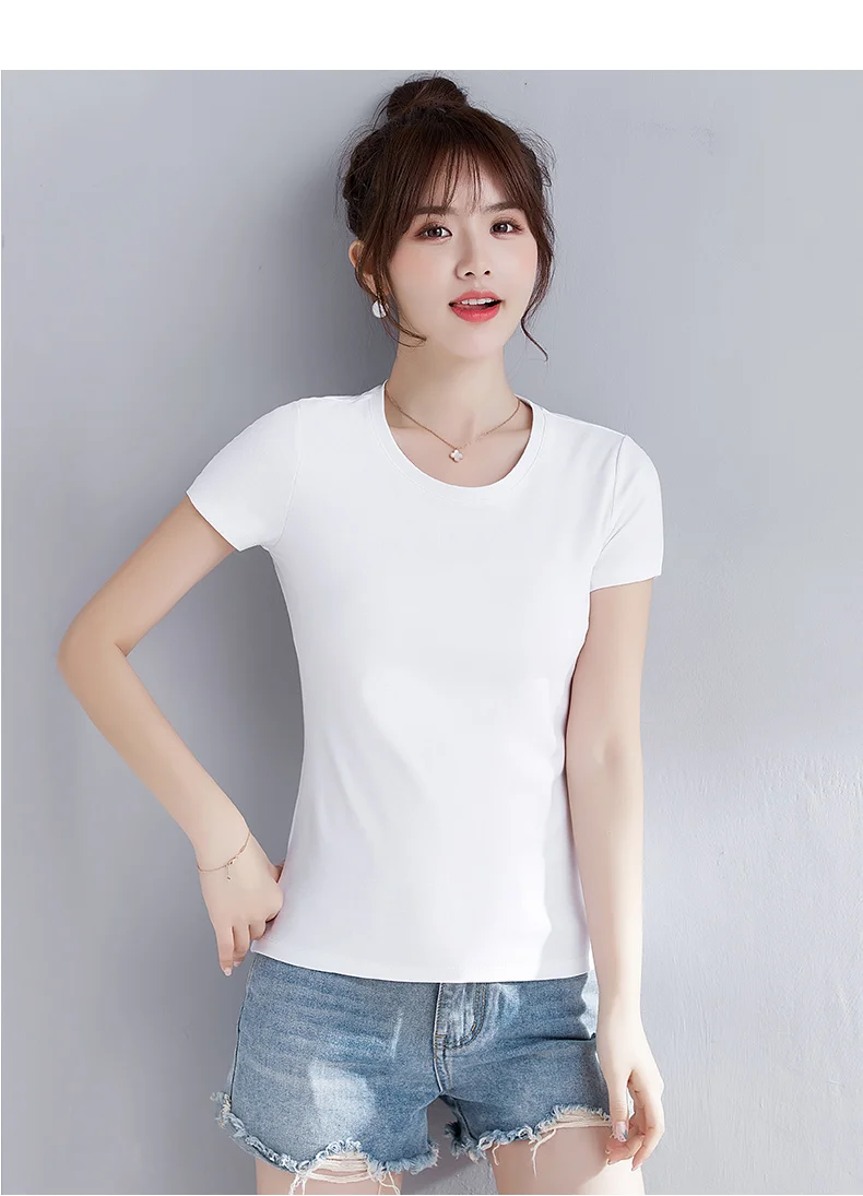 Футболка женская хлопковая однотонная, с круглым вырезом и коротким рукавом