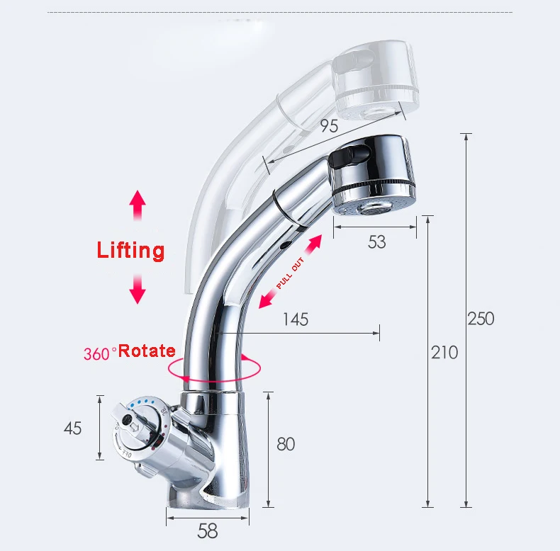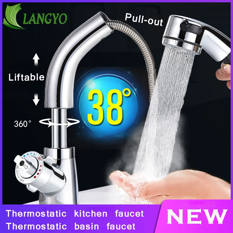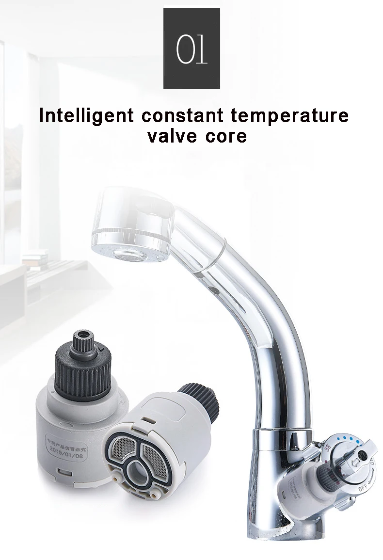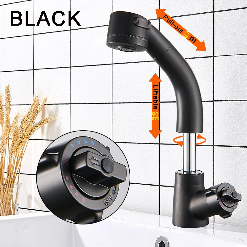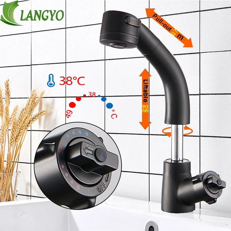 Термостатический выдвижной смеситель для раковины в ванной комнате смеситель для горячей и холодной воды кран с вертикальной и нижней отделкой 360 градусов смеситель для воды кран