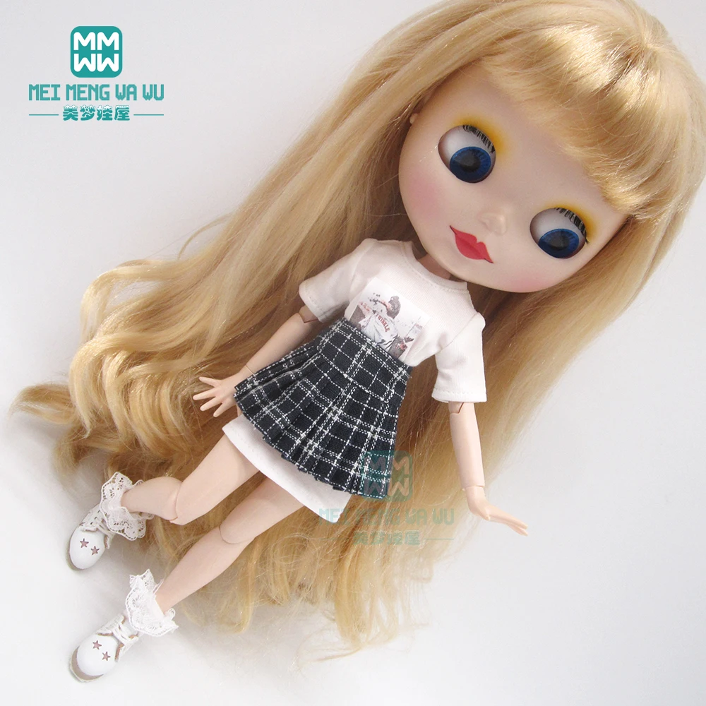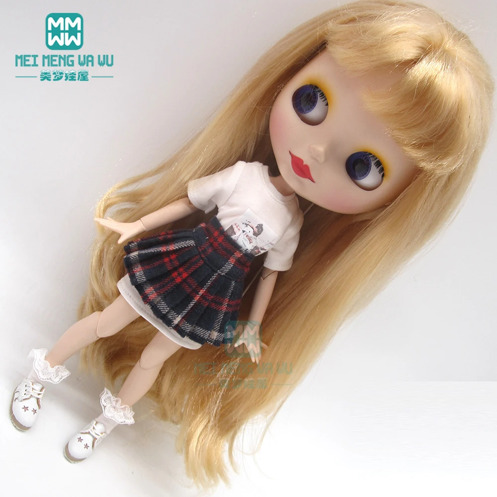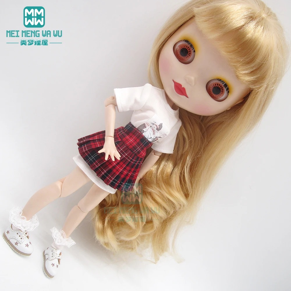 1 шт. Одежда для куклы Blyth, футболка, плиссированная юбка, кожаная обувь, носки для Blyth Azone OB23 OB24 16, аксессуары для кукол
