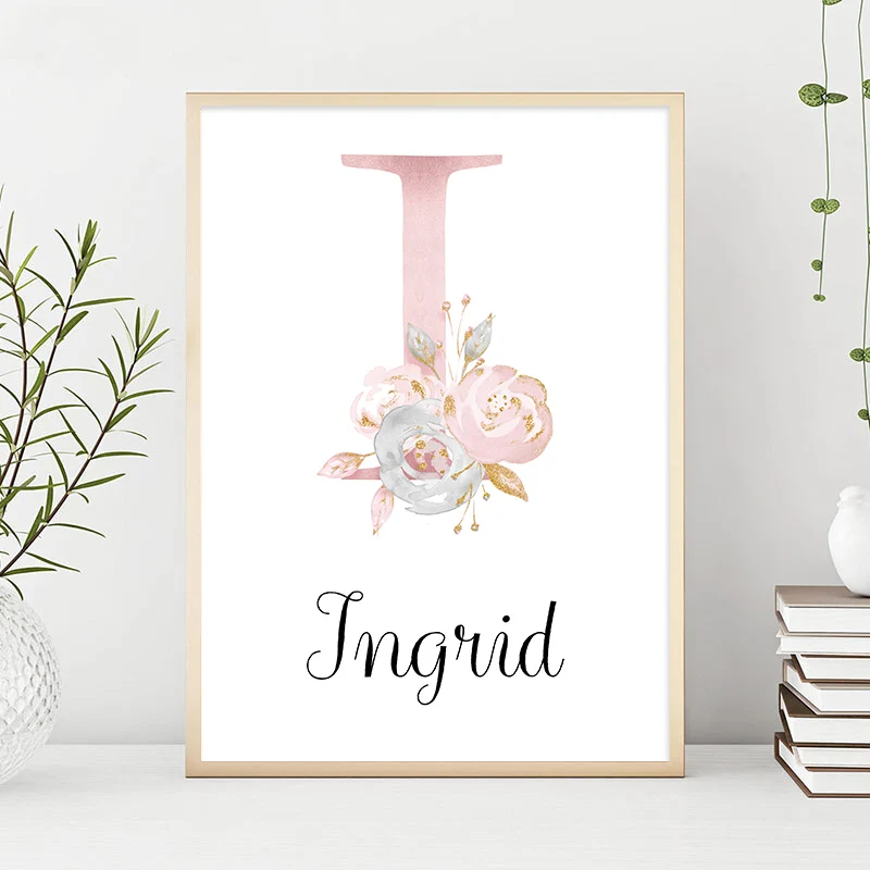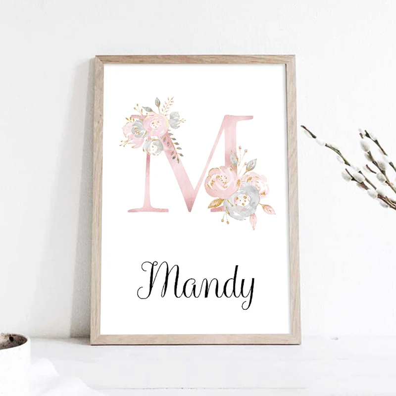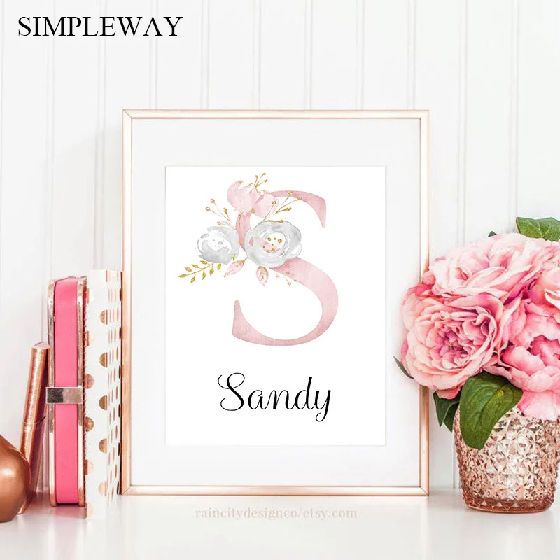 Персонализированный постер с именем на заказ, цветочные буквы, Художественная печать на холсте для детской комнаты, Настенная картина, украшение для детской комнаты, спальни