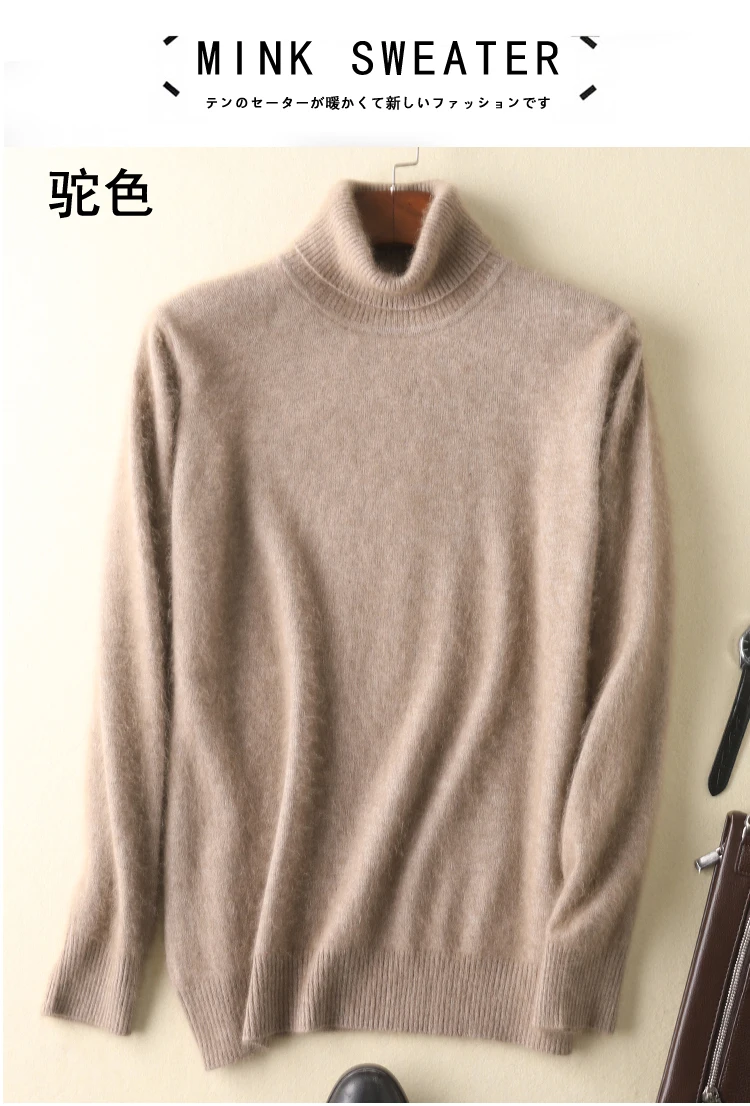 Зимний толстый теплый норковый кашемировый свитер, Мужская водолазка, мужские свитера, вязаный пуловер, Мужская Классическая однотонная Шерстяная трикотажная одежда