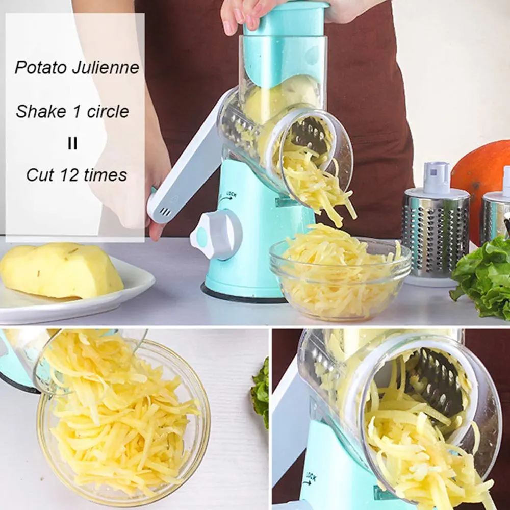 Многофункциональная круглая мандолина 3 в 1, ручная овощерезка, слайсер, овощерезка, спиральный измельчитель, слайсер для картофеля, кухонные гаджеты